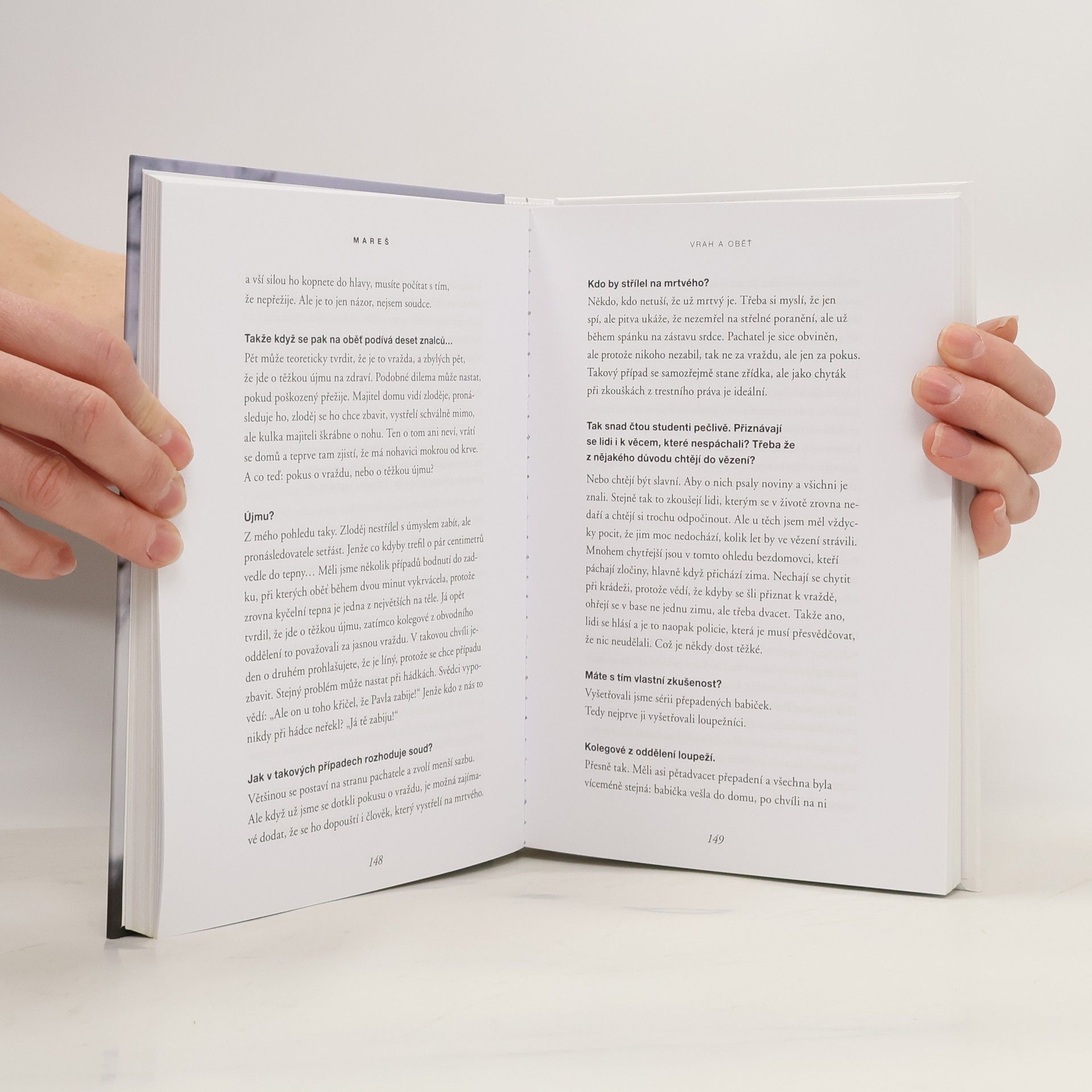 Kniha je vedena formou rozhovorů s Josefem Marešem, který je jedním z nejznámějších českých kriminalistů, bývalým šéfem pražské mordparty a autorem seriálů Devadesátky a Případy 1. oddělení. Mareš vzpomíná na známé případy, jako je vytahování sudů z Orlické přehrady, zmizelá Anička nebo přestřelka, do které byla zapletena mafie. Vypráví také o tom, jak zpracovává zlo, se kterým se při práci setkává, jak probíhá vyšetřování i o jeho vztahu k pachatelům.