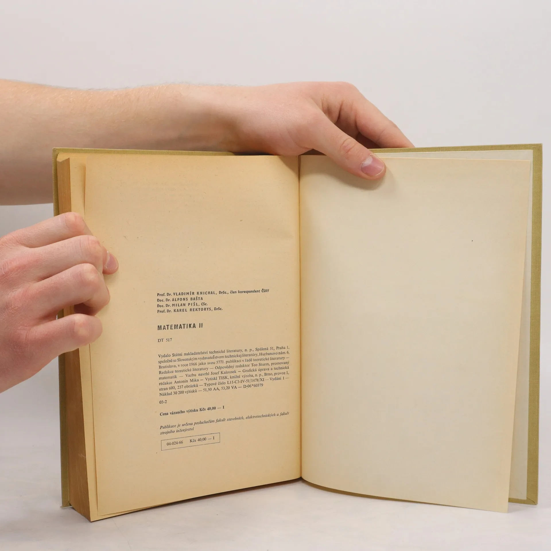 Matematika II., Vladimír Knichal, Alfons Bašta, Milan Pišl, Karel Rektorys