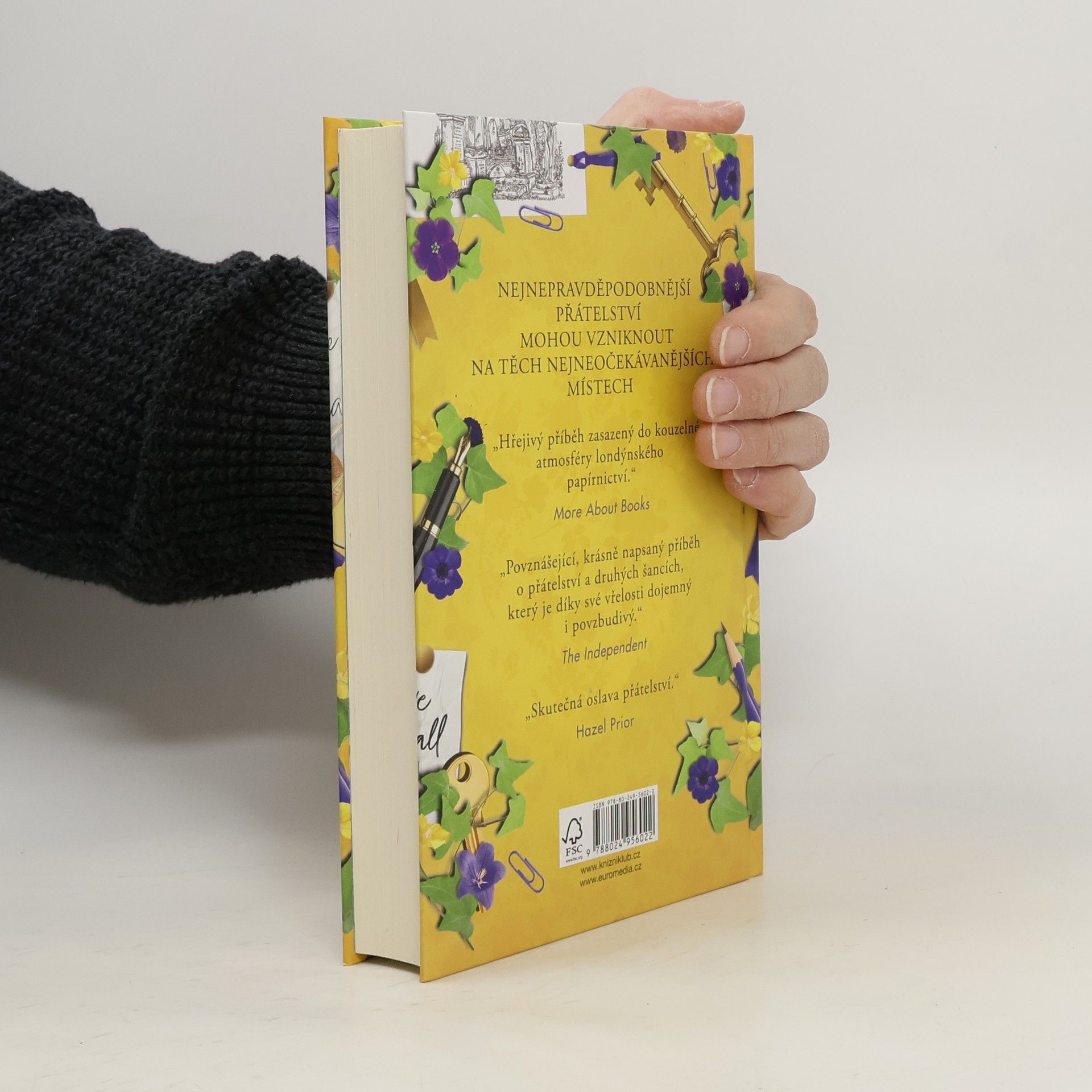 Milý a laskavý příběh o tom, jak se na těch nejnepravděpodobnějších místech mohou zrodit ta nejneočekávanější přátelství. Jo přijíždí do Londýna, aby se postarala o papírnictví svého nemocného strýce. Navíc je právě po rozchodu, takže jí tento únik přijde vhod. Jo se usazuje v obchůdku a pomalu poznává své sousedy a pravidelné zákazníky. Mohutného potetovaného optika Erica. Tatéra Landa. Sedmdesátníka Malcolma, který si k ní chodí každý týden kupovat nový sešit. Ruth, reverendku, která skrývá tajemství. Dokáže se jim Jo otevřít a změnit tak svůj život?