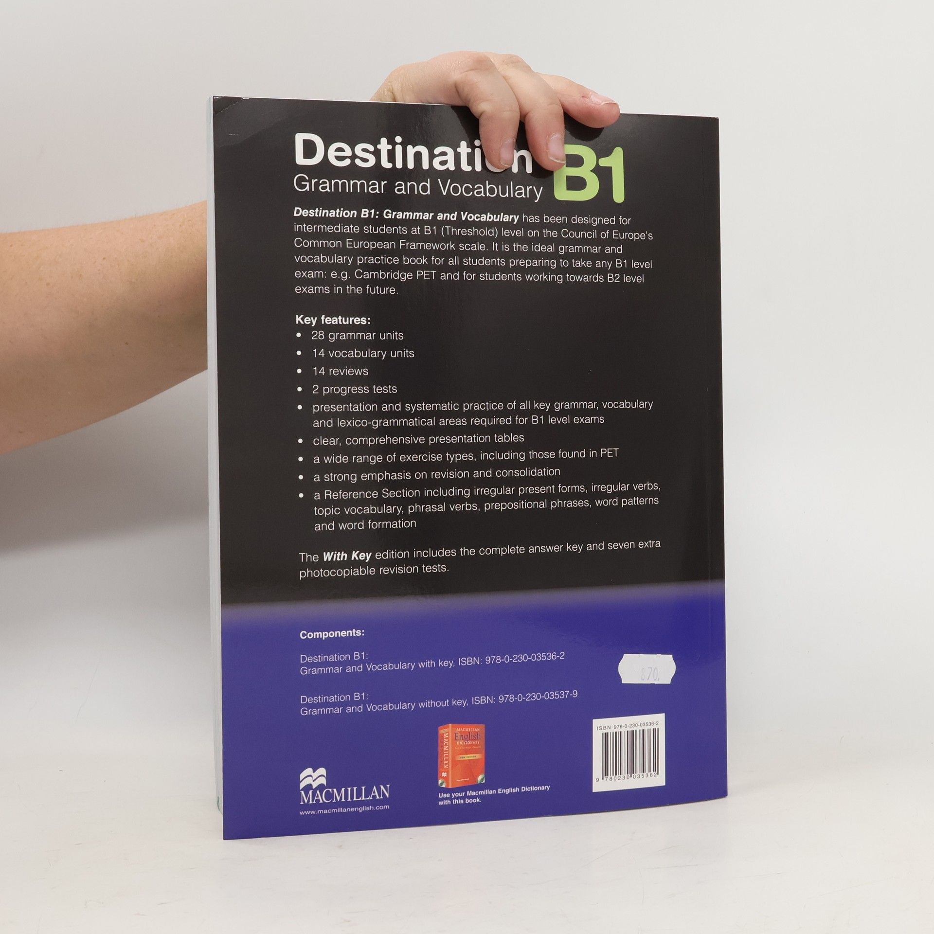 Destination B1: Grammar and Vocabulary has been designed for intermediate students at B1 (Threshold) level on the Council of Europe's Common European Framewoirk Scale. It is the ideal grammar and vocabulary practice booksfor all students preparing to take ang B1 level exam: e.g. Cambridge PET and for students working towards B2 level exams in the future.