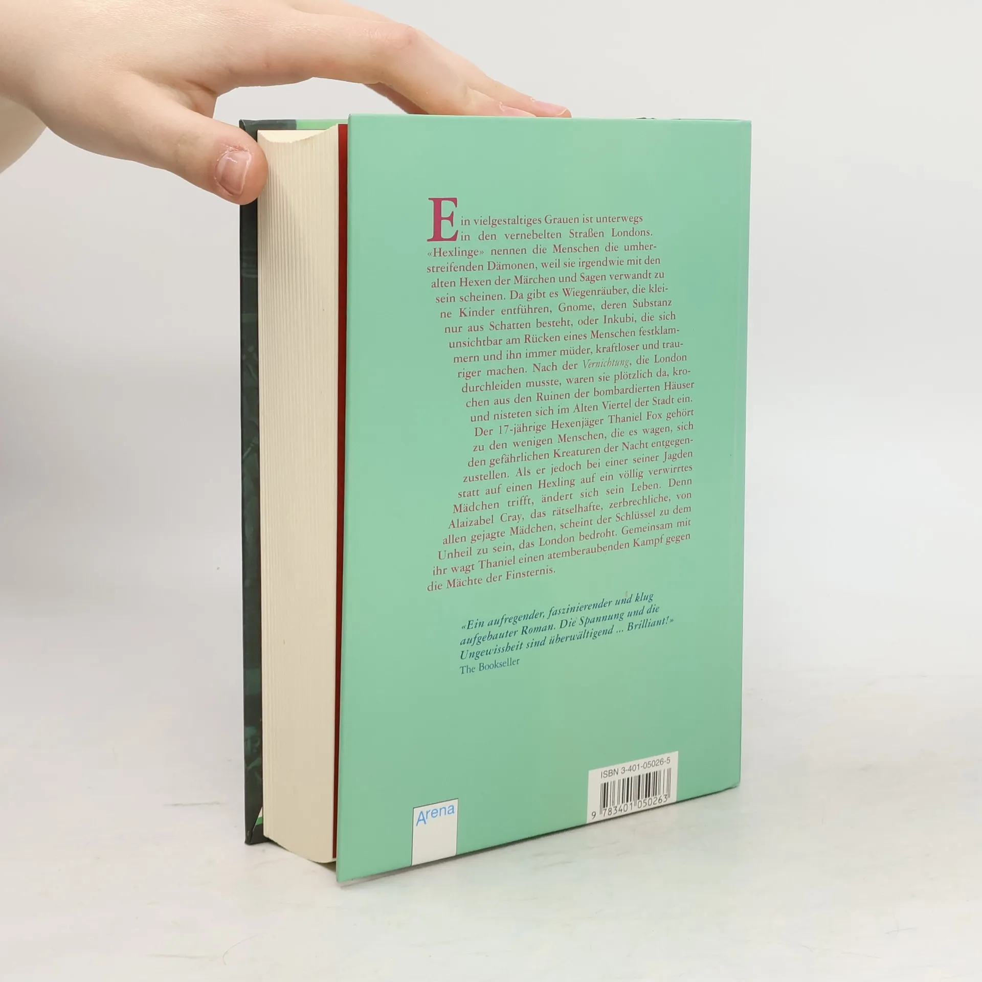 Das Grauen in London... Das Leben in London hat sich seit der "Vernichtung" verändert. Nicht nur, dass das Leben generell schwerer geworden ist, nein auch tauchen immer mehr und mehr Spukgestalten auf. Doch es gibt auch Leute, die sie mit Talismanen, Amuletten und Magie bekämpfen. So auch der 17-jährige Thaniel. Thaniel ist trotz seines Alters einer der besten Hexenjäger. So macht er sich jede Nacht auf die Jagd nach Spukgestalten. Eines Nachts auf der Jagd nach einem Wiegenräuber trifft er auf ein völlig verwirrtes Mädchen... Alaizabel Cray. Sie scheint der Schlüssel zu dem ganzen Unheil zu sein und schon bald stecken die beiden bis über die Ohren in seltsamen, unheimlichen Geschehnissen. So verstricken sie sich in einen Kampf gegen die geheimnisvolle Gilde, in dem es nicht nur um ihr Leben geht, sondern um das Schicksal der ganzen Welt! Ab 12 Jahren, ausgezeichnet, Frau SM.