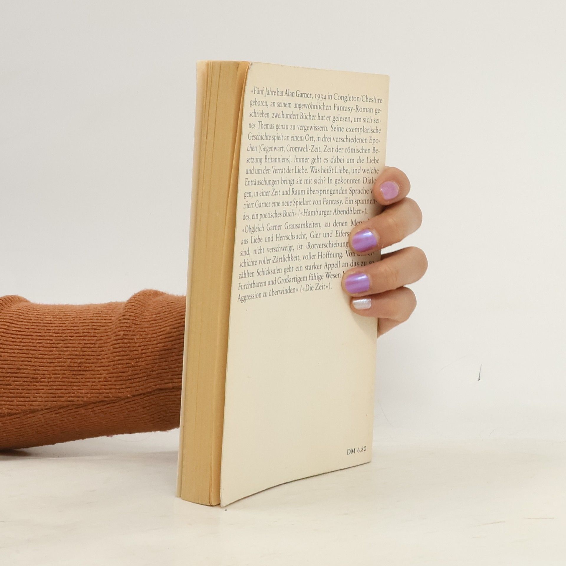 «Fünf Jahre hat Alan Garner, 1934 in Congleton/Cheshire geboren, an seinem ungewöhnlichen Fantasy-Roman geschrieben, zweihundert Bücher hat er gelesen, um sich seines Themas genau zu vergewissern. Seine exemplarische Geschichte spielt an einem Ort, in drei verschiedenen Epochen (Gegenwart, Cromwell-Zeit, Zeit der römischen Besetzung Britanniens). Immer geht es dabei um die Liebe und um den Verrat der Liebe. Was heißt Liebe, und welche Enttäuschungen bringt sie mit sich? In gekonnten Dialogen, in einer Zeit und Raum überspringenden Sprache variiert Garner eine neue Spielart von Fantasy. Ein spannendes, ein poetisches Buch» («Hamburger Abendblatt»). «Obgleich Garner Grausamkeiten, zu denen Menschen aus Liebe und Herrschsucht, Gier und Eifersucht fähig sind, nicht verschweigt, ist eine Geschichte voller .Zärtlichkeit, voller Hoffnung. Von den erzählten Schicksalen geht ein starker Appell an das zu so Furchtbarem und Großartigem fähige Wesen Mensch aus, Aggression zu überwinden» («Die Zeit»).