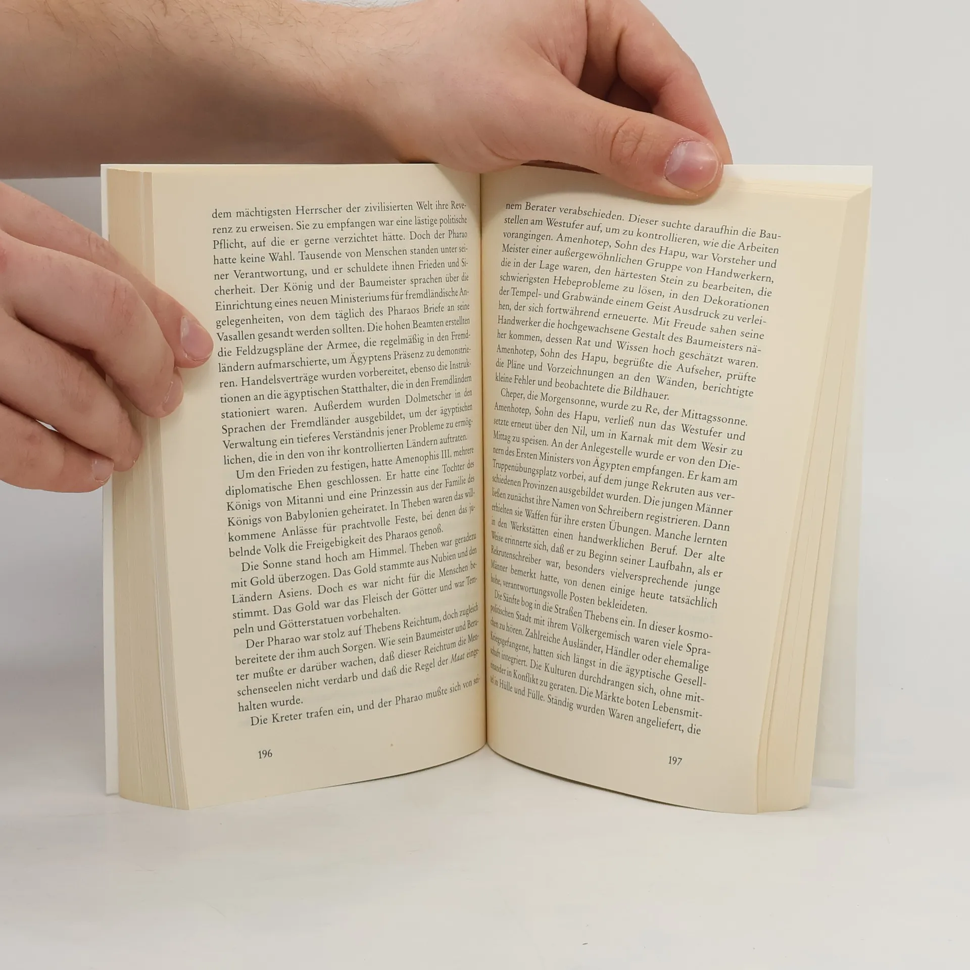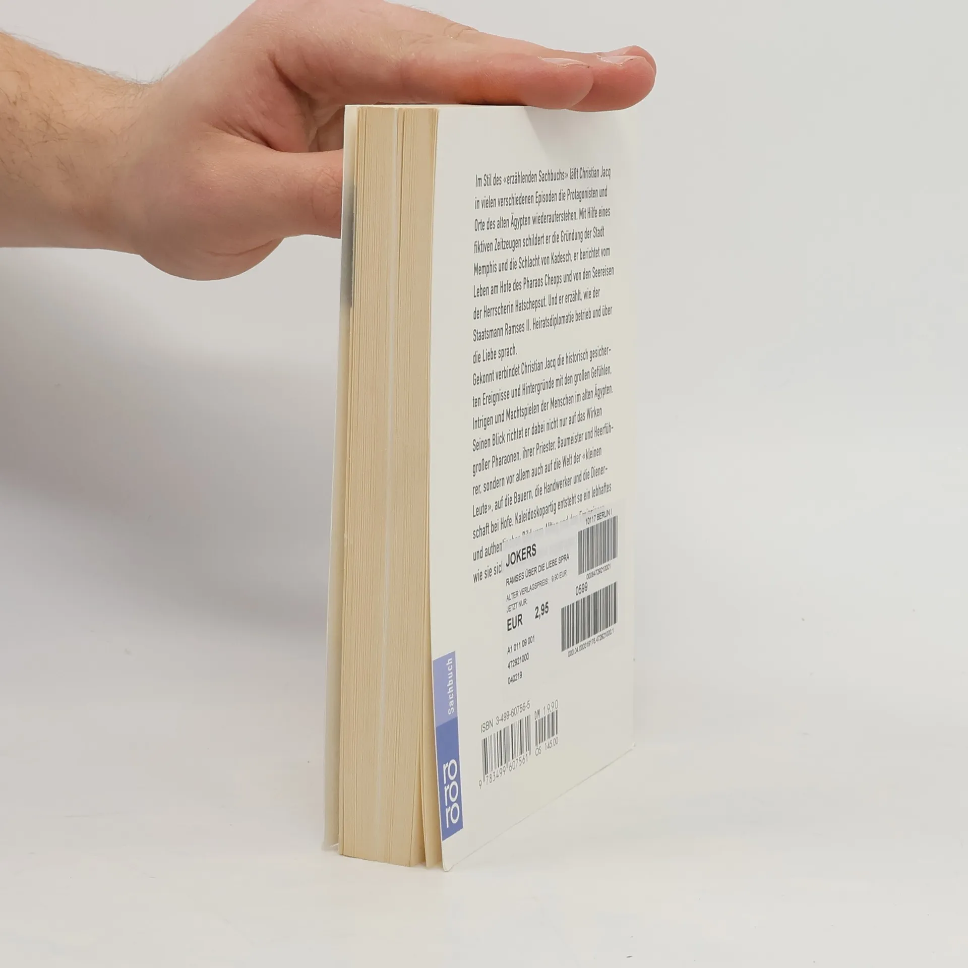 Im Stil des 'erzählenden Sachbuchs' läßt Christian Jacq in vielen verschiedenen Episoden die Protagonisten und Orte des alten Ägypten wiederauferstehen. Mit Hilfe eines fiktiven Zeitzeugen schildert er die Gründung der Stadt Memphis und die Schlacht von Kadesch, er berichtet vom Leben am Hofe des Pharaos Cheops und von den Seereisen der Herrscherin Hatschepsut. Und er erzählt, wie der Staatsmann Ramses II. Heiratsdiplomatie betrieb und über die Liebe sprach.§Gekonnt verbindet Christian Jacq die historisch gesicherten Ereignisse und Hintergründe mit den großen Gefühlen, Intrigen und Machtspiele der Menschen im alten Ägypten. Seinen Blick richtet er dabei nicht nur auf das Wirken großer Pharaonen, ihrer Priester, Baumeister und Heerführer, sondern vor allem auch auf die Welt der 'kleinen Leute', auf die Bauern, die Handwerker und die Dienerschaft bei Hofe. Kaleidoskopartig entsteht so ein lebhaftes und authentisches Bild vom Alltag und den Ereignissen im alten Ägypten.