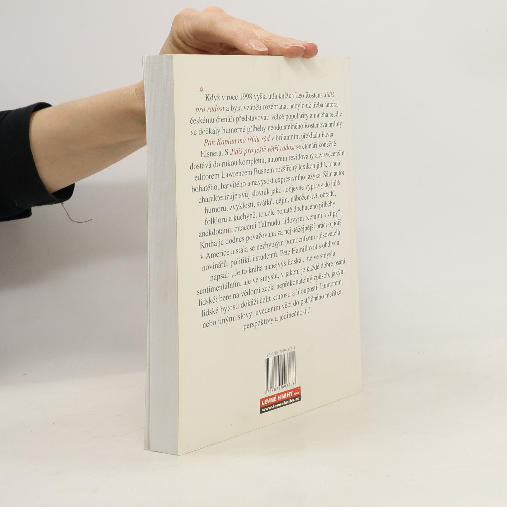 Kompletní slovník jidiš výrazů doprovázených příběhem, anekdotou, nebo hořkou glosou o životě, je rozšířenou variací knihy Jidiš pro radost. Autor, americký historik, sociolog, reportér a vypravěč, vytvořil specifický slovník jidiš výrazů, používaných židovskou komunitou po celém světě, a doprovodil je příběhy plnými lidové moudrosti, svébytnými židovskými anekdotami, zhuštěnými do umění sebeironie, aforismy a historkami. Tím vším originálně a vtipně ilustruje význam slova a výrazu.