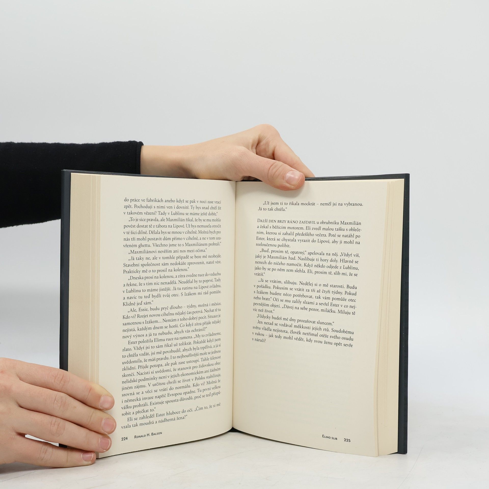 Eliho slib je mistrným dílem historické fikce, jehož děj se odvíjí ve třech časových pásmech: v nacisty okupovaném Polsku, americké zóně poválečného Německa a v Chicagu během války ve Vietnamu. Ronald H. Balson, nositel Národní židovské knižní ceny za literaturu, v knize zkoumá cenu války, ambivalentní hodnotu přežití a nezlomitelnou sílu rodinných pout. 1939: Eli Rosen žije se svou ženou Ester a jejich malým synkem v polském Lublinu, kde má jeho rodina stavební společnost. Ta je vyvlastněna nacisty a svěřena do správy Maxmiliánovi Poleskému, bezpáteřnímu šmelináři. Vznikne tak vratké spojenectví: pokud se Eli bude starat o obchod, Maxmilián zajistí jeho rodině bezpečí. Dostane Poleski svému slibu, nebo jejich vztah skončí zradou a tragédií? 1946: Eli spolu se synem bydlí ve Spojenci ovládaném Německu a pevně doufá v udělení víz do Ameriky. Svou ženu od války neviděl. Po táboře se potuluje muž, jenž prodává nelegální americká víza – nezná její osud třeba on? 1965: Eli si pronajme pokoj v chicagské čtvrti Albany Park. Je na misi. S trpělivostí, mazaností a neutuchajícím úsilím se proplétá neznámými ulicemi Chicaga i nebezpečnou politickou hrou a pátrá přitom po pravdě o Esteřině zmizení, jež mu poslední čtvrt století zůstává záhadou. Silný a emotivní román Ronalda H. Balsona Eliho slib je znamenitým, obohacujícím příběhem o druhé světové válce a manželově honbě za spravedlností.