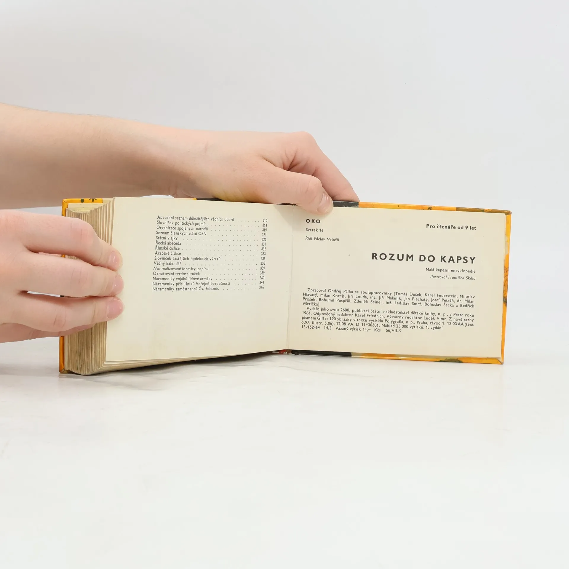 Malá encyklopedie přináší množství užitečných a zajímavých informací z nejrůznějších oborů. Najdeme v ní mj. stručné údaje o velkých postavách naší i světové kultury, vědy a techniky, základní fakta z přírodopisu, astronomie, kosmonautiky, mineralogie, matematiky, fyziky, chemie azeměpisu. Další oddíly obsahují zprávy o Československu a jeho hlavním městě, zajímavosti z dopravy, slovníček některých politických pojmů, vojenské hodnosti, tabulky lehkoatletických olympijských rekordů mužů i žen aj.