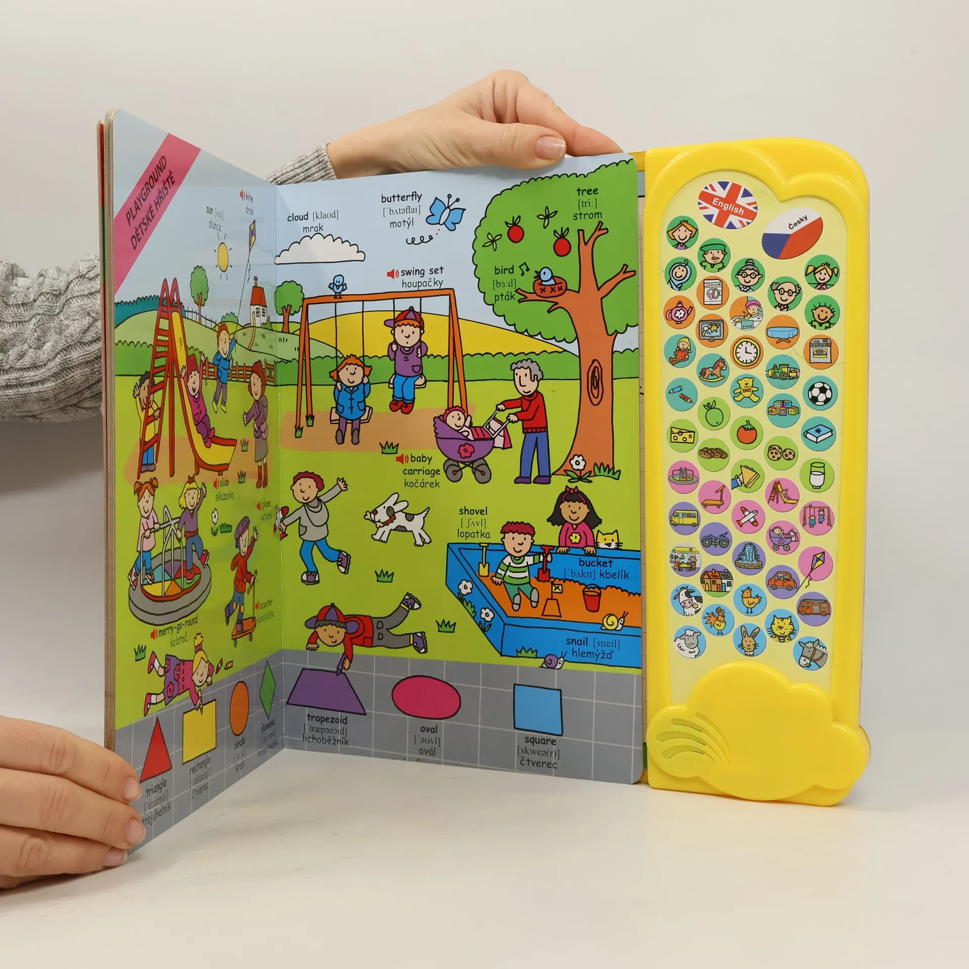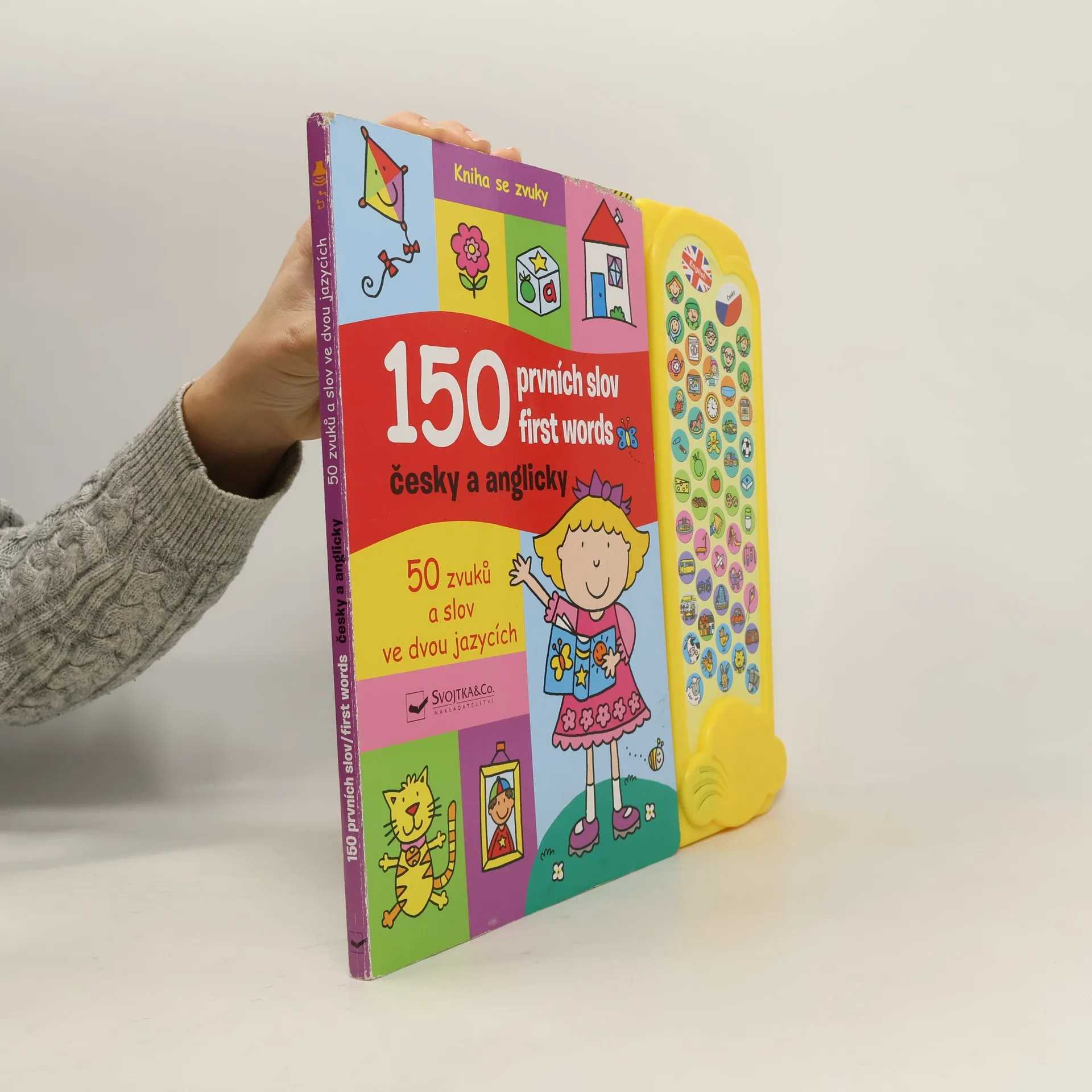 Výuková knížka se zvuky pro nejmenší, určená k osvojení základních slovíček ve dvou jazycích češtině a angličtině.