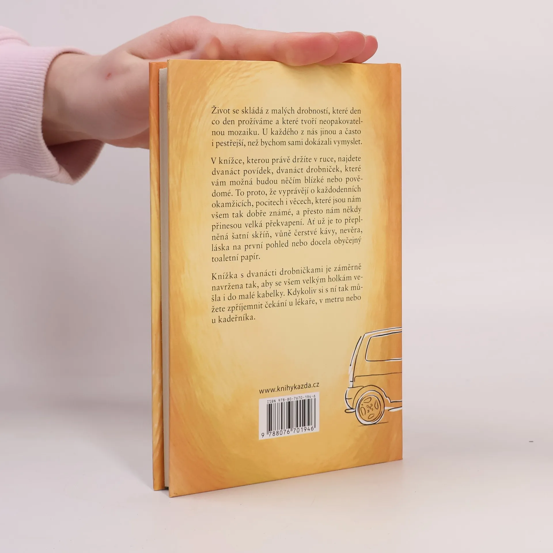 Život se skládá z malých drobností, které den co den prožíváme a které tvoří neopakovatelnou mozaiku. U každého z nás jinou a často i pestřejší, než bychom sami dokázali vymyslet. V knížce, kterou právě držíte v ruce, najdete dvanáct povídek, dvanáct drobniček, které vám možná budou něčím blízké nebo povědomé. To proto, že vyprávějí o každodenních okamžicích, pocitech i věcech, které jsou nám všem tak dobře známé, a přesto nám někdy přinesou velká překvapení. Ať už je to přeplněná šatní skříň, vůně čerstvé kávy, nevěra, láska na první pohled nebo docela obyčejný toaletní papír. Knížka s dvanácti drobničkami je záměrně navržena tak, aby se všem velkým holkám vešla i do malé kabelky. Kdykoliv si s ní tak můžete zpříjemnit čekání u lékaře, v metru nebo u kadeřníka.