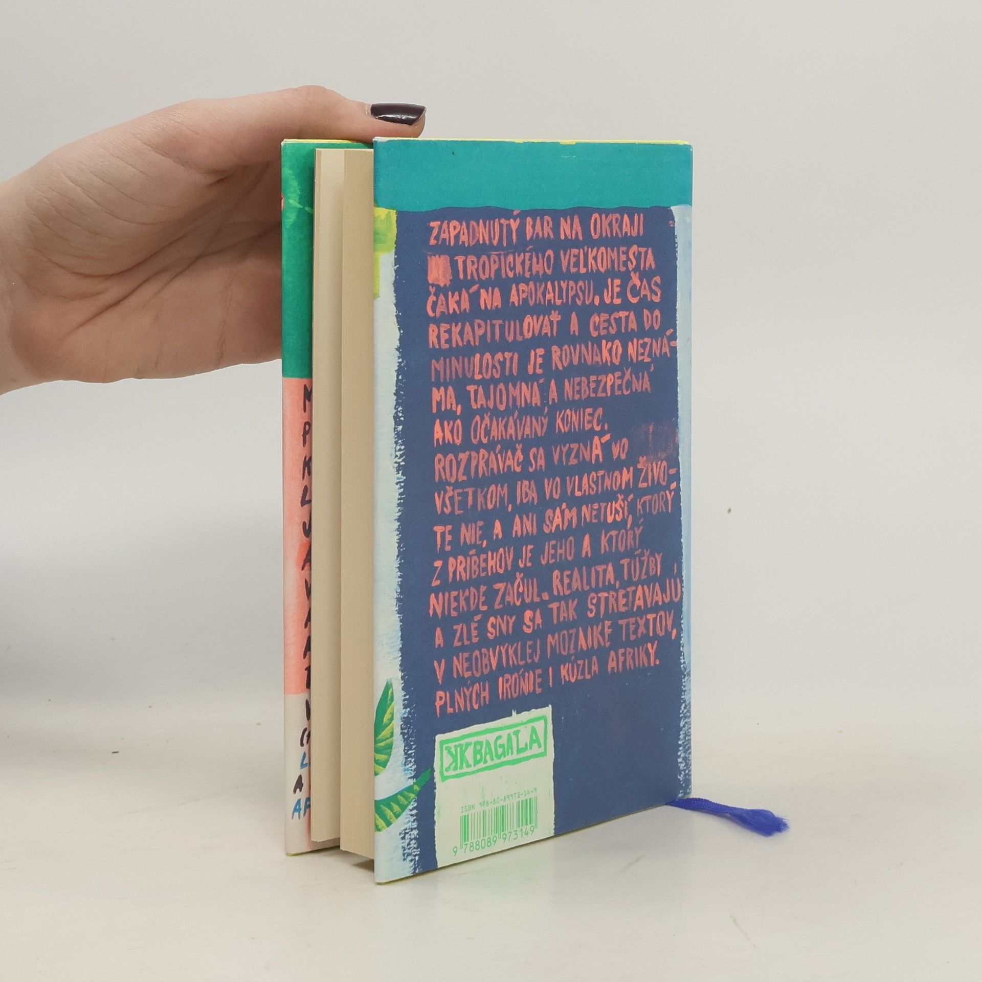 Zapadnutý bar na okraji tropického veľkomesta čaká na apokalypsu. Je čas rekapitulovať a cesta do minulosti je rovnako neznáma, tajomná a nebezpečná ako očakávaný koniec. Rozprávač sa vyzná vo všetkom, iba vo vlastnom živote nie, a ani sám netuší, ktorý z príbehov je jeho a ktorý niekde začul. Realita, túžby a zlé sny sa tak stretávajú v neobvyklej mozaike textov, plných irónie i kúzla Afriky. Kniha vychádza s obálkou v 4 variantoch s ilustráciami Daniely Olejníkovej.