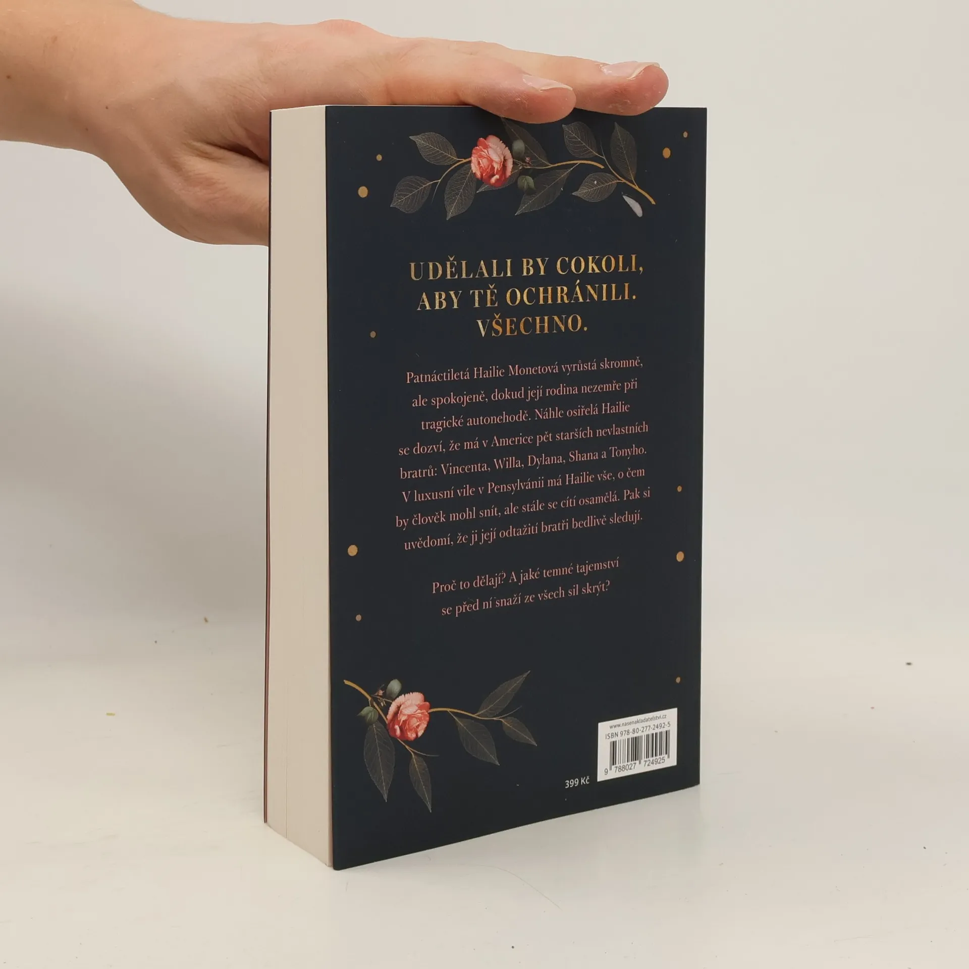 Udělali by cokoliv, aby tě ochránili. Všechno. 15letá Hailie Monet vyrůstá skromně, ale chráněná, dokud její rodina nezemře při tragické autonehodě. Náhle osiřelá Hailie se dozví, že má v Americe pět starších nevlastních bratrů: Vincenta, Willa, Dylana, Shana a Tonyho. V luxusní vile v Pensylvánii má Hailie vše, o čem mohla snít, a stále se cítí osamělá. Pak si uvědomí, že ji její odtažití bratři bedlivě sledují. Ale kdo by se na ně mohl zaměřit? A jaké temné tajemství se její bratři snaží ze všech sil skrýt?