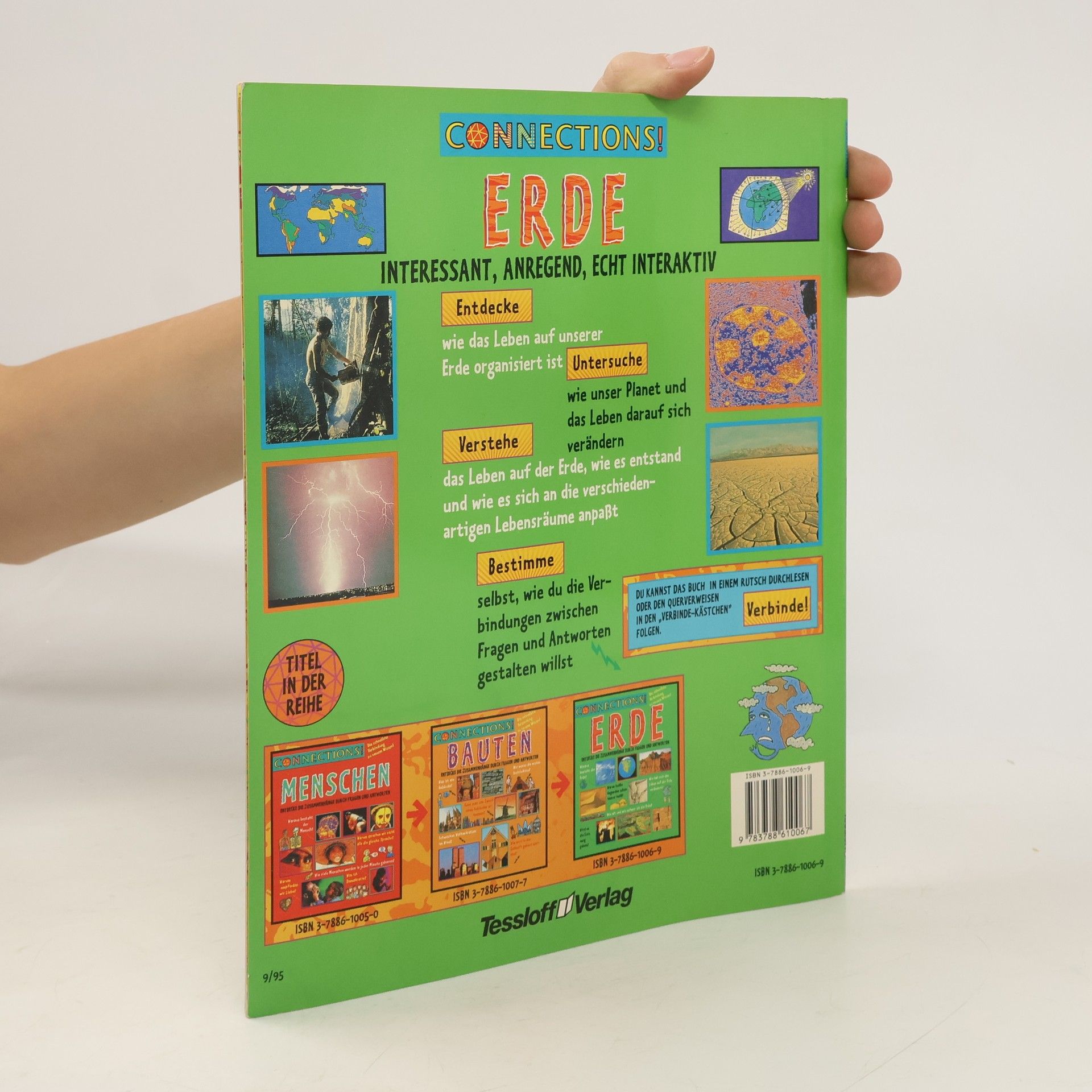 Verlagsneuer Band aus aufgelöstem Spielwarenfachhandel, unbenutzt mit minimalen Lagerspuren. 32 Seiten, kartoniert, Auflage 1995, Maße: 27 x 22 cm. Titel: 'Erde. Entdecke die Zusammenhänge durch Fragen und Antworten'.