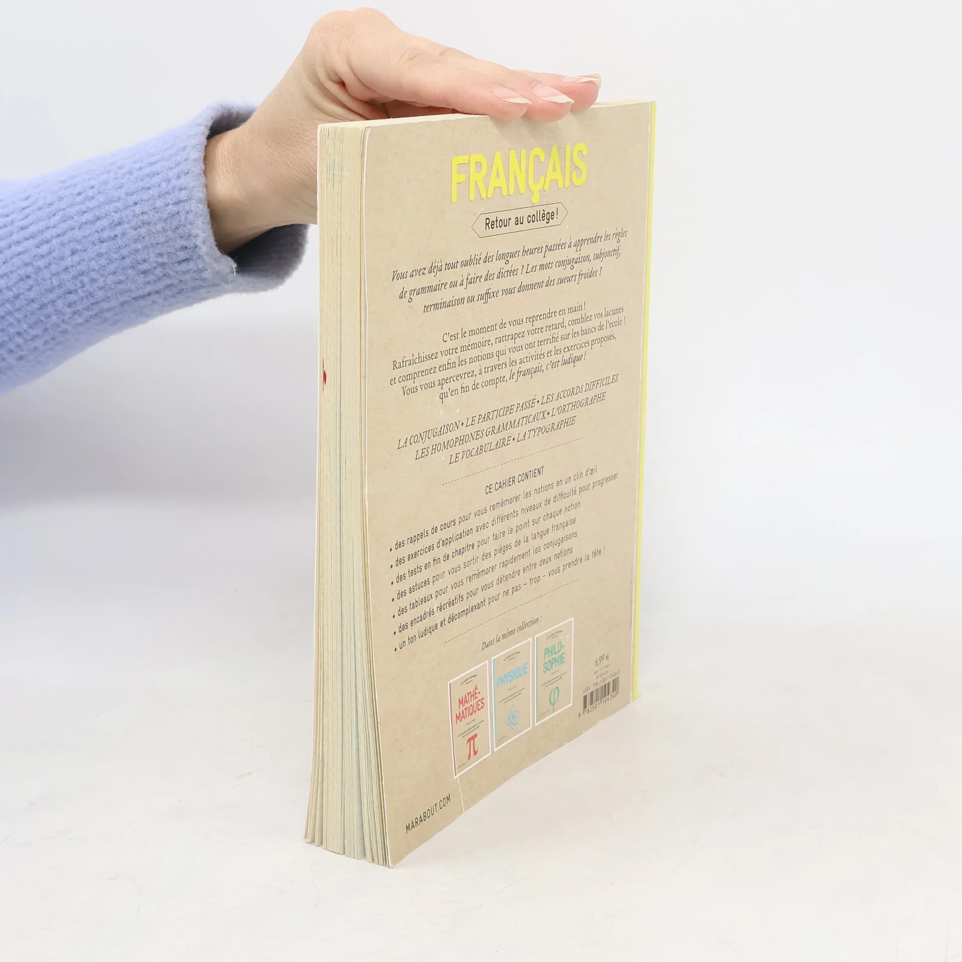 Retour au collège ! Vous avez déjà tout oublié des longues heures passées à apprendre les règles de grammaire ou à faire des dictées ? Les mots conjugaison, subjonctif, terminaison ou suffixe vous donnent des sueurs froides ? C'est le moment de vous reprendre en main ! Rafraîchissez votre mémoire, rattrapez votre retard, comblez vos lacunes et comprenez enfin les notions qui vous ont terrifié sur les bancs de l'école ! Vous vous apercevrez, à travers les activités et les exercices proposés, qu'en fin de compte, le français, c'est ludique !
