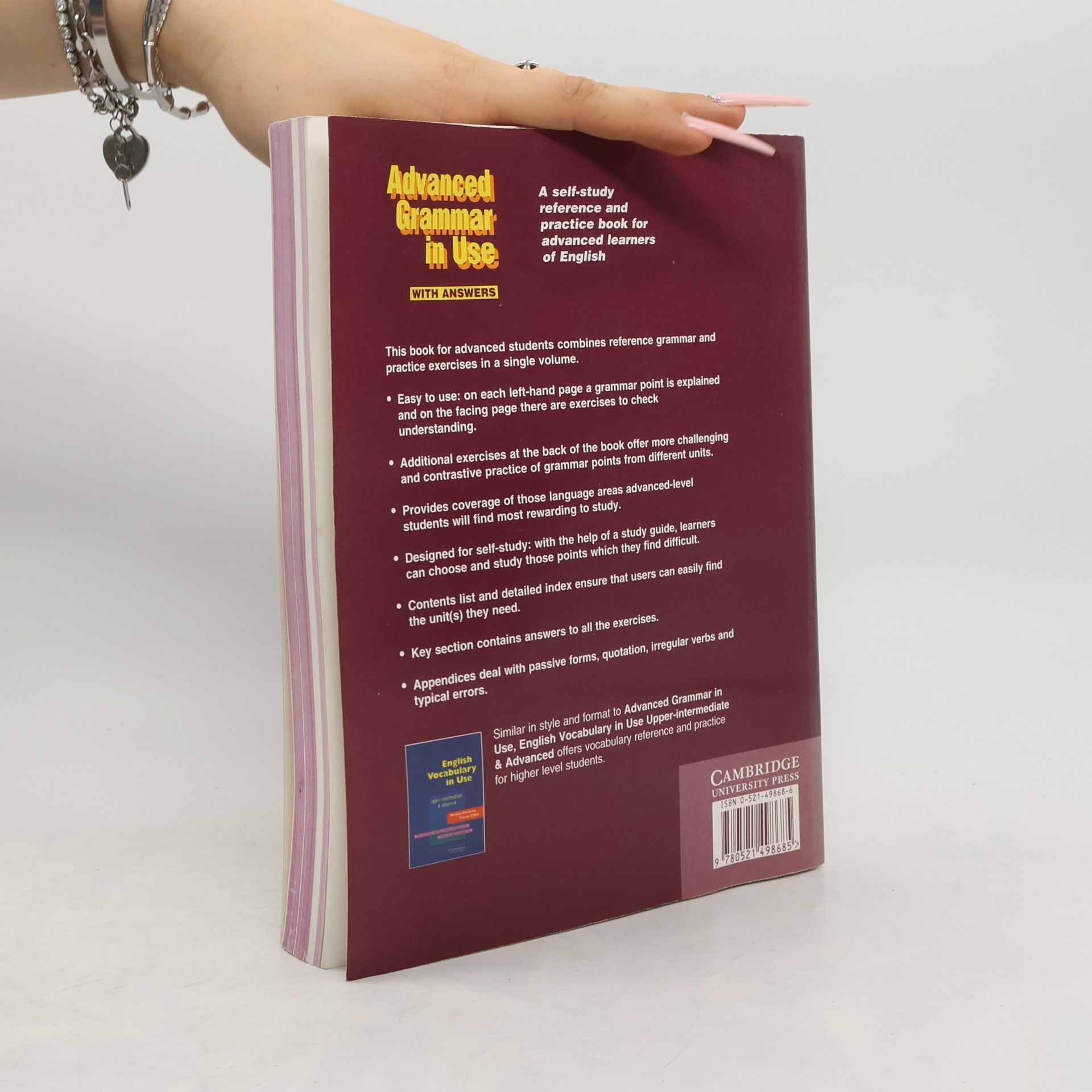 Advanced Grammar in Use contains 120 units of grammar explanation and practice exercises. It provides coverage of those language areas advanced-level students will find most rewarding to study. It retains the clarity of presentation of other books in the 'in Use' family. Two-page units present grammar explanation and examples, including typical student mistakes, on left-hand pages, and useful and varied practice on right-hand pages. Extra practice exercises at the back provide further challenging and contrastive practice of grammar points from different units. A study guide helps students find those areas most appropriate for their study. Grammar areas are cross-referenced throughout. There are useful appendices dealing with verb forms, and a glossary and all answers are given at the back.