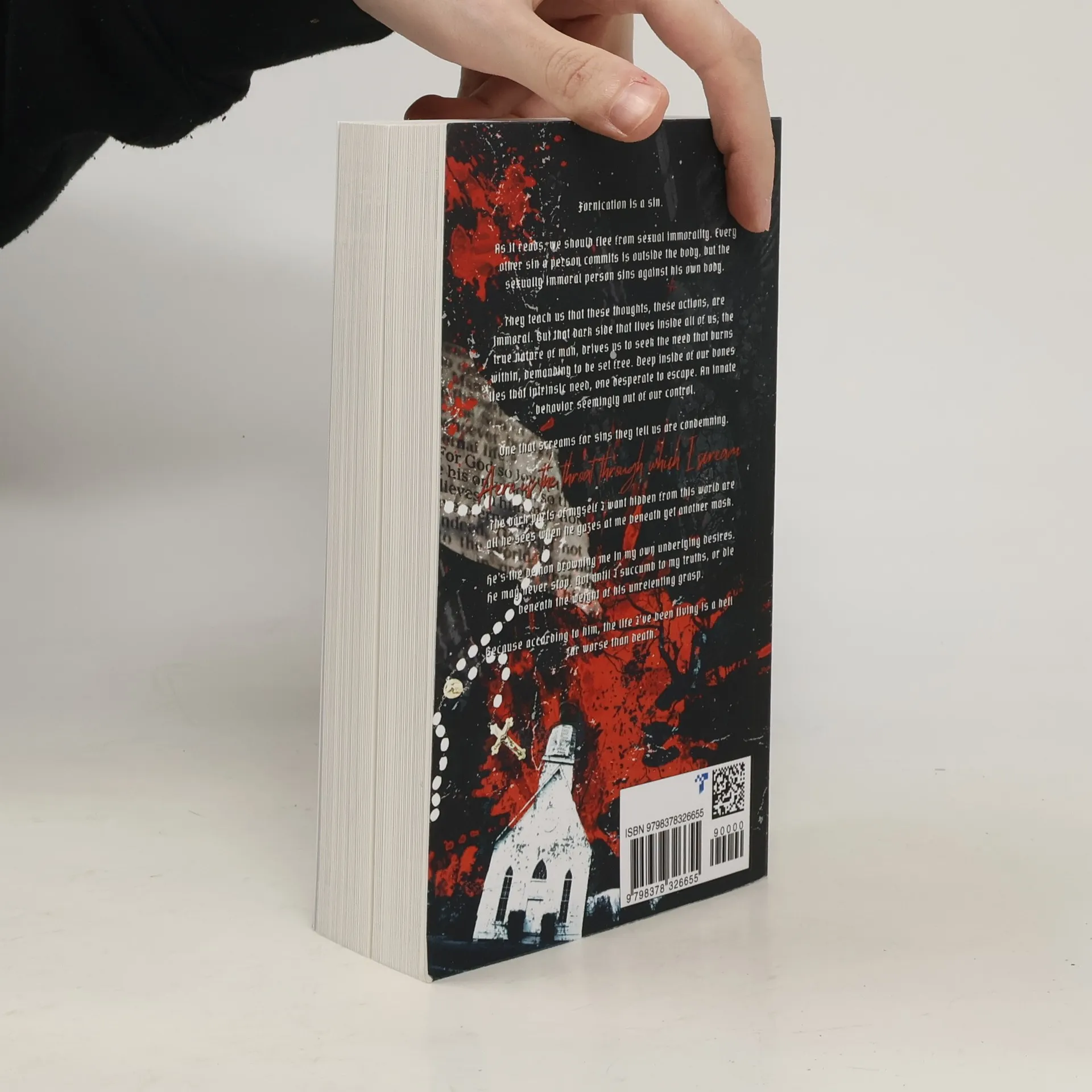 Fornication is a sin. As it reads, we should flee from sexual immorality. Every other sin a person commits is outside the body, but the sexually immoral person sins against his own body. They teach us that these thoughts, these actions, are immoral. But that dark side that lives inside all of us, the true nature of man, drives us to seek the need that burns within, demanding to be set free. Deep inside of our bones lies that intrinsic need, one desperate to escape. An innate behavior, seemingly out of our control. One that screams for sins they tell us are condemning. Aero is the throat from which I scream. The dark parts of myself I want hidden from this world are all he sees when he gazes at me beneath yet another mask. He’s the demon drowning me in my own underlying desires. He may never stop. Not until I succumb to my truths, or die beneath the weight of his unrelenting grasp. Because according to him, the life I've been living is a hell far worse than death. -- back of cover.