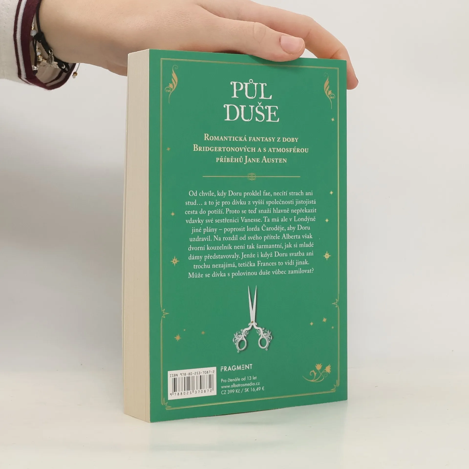Romantická fantasy z doby Bridgertonových a s atmosférou příběhů Jane Austen. Od chvíle, kdy Doru proklel fae, necítí strach ani stud… a to je pro dívku z vyšší společnosti jistojistá cesta do potíží. Proto se teď snaží hlavně nepřekazit vdavky své sestřenici Vanesse. Ta má ale v Londýně jiné plány – poprosit lorda Čaroděje, aby Doru uzdravil. Na rozdíl od svého přítele Alberta však dvorní kouzelník není tak šarmantní, jak si mladé dámy představovaly. Jenže i když Doru svatba ani trochu nezajímá, tetička Frances to vidí jinak. Může se dívka s polovinou duše vůbec zamilovat?