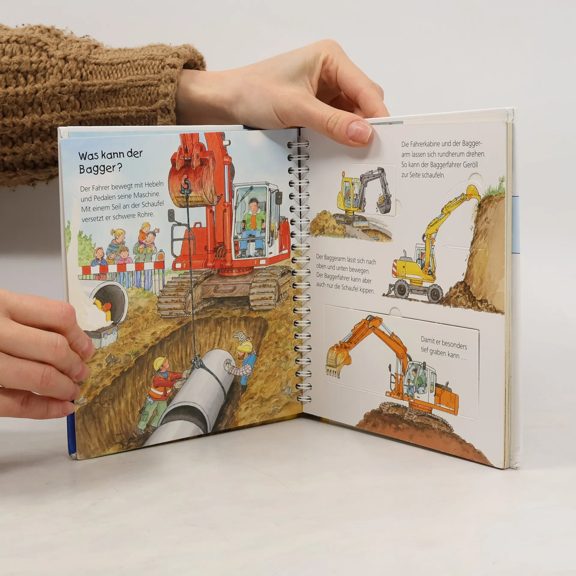 Für die Kleinen sind Bagger das Größte. Gebannt beobachten sie, wie die mächtigen Schaufeln ins Erdreich graben. Doch wie kommen die Fahrzeuge zur Baustelle? Was können Schrott- und Abrissbagger? Raffinierte Klappen verdeutlichen ihre Aufgaben, während detailreiche Illustrationen es den Kindern ermöglichen, die Bagger aus verschiedenen Perspektiven zu betrachten. Die Sachbuchreihe richtet sich an Kinder von 2-4 Jahren und beantwortet ihre vielen Fragen auf Augenhöhe. Themen aus ihrem Alltag und Interessenswelt werden altersgerecht und mit viel Liebe zum Detail beleuchtet. Die Reihe ist speziell auf kleine Hände und die Bedürfnisse der Jüngsten abgestimmt. Klare, liebevolle Bilder, kurze Sachtexte und handliche Klappen, die Bewegungen veranschaulichen, ermöglichen es den Kindern, ihre Themen selbst zu entdecken. Der Spaß am eigenständigen Erkunden, die liebevolle Gestaltung und die hochwertige Ausstattung garantieren langanhaltende Freude an jedem Buch.