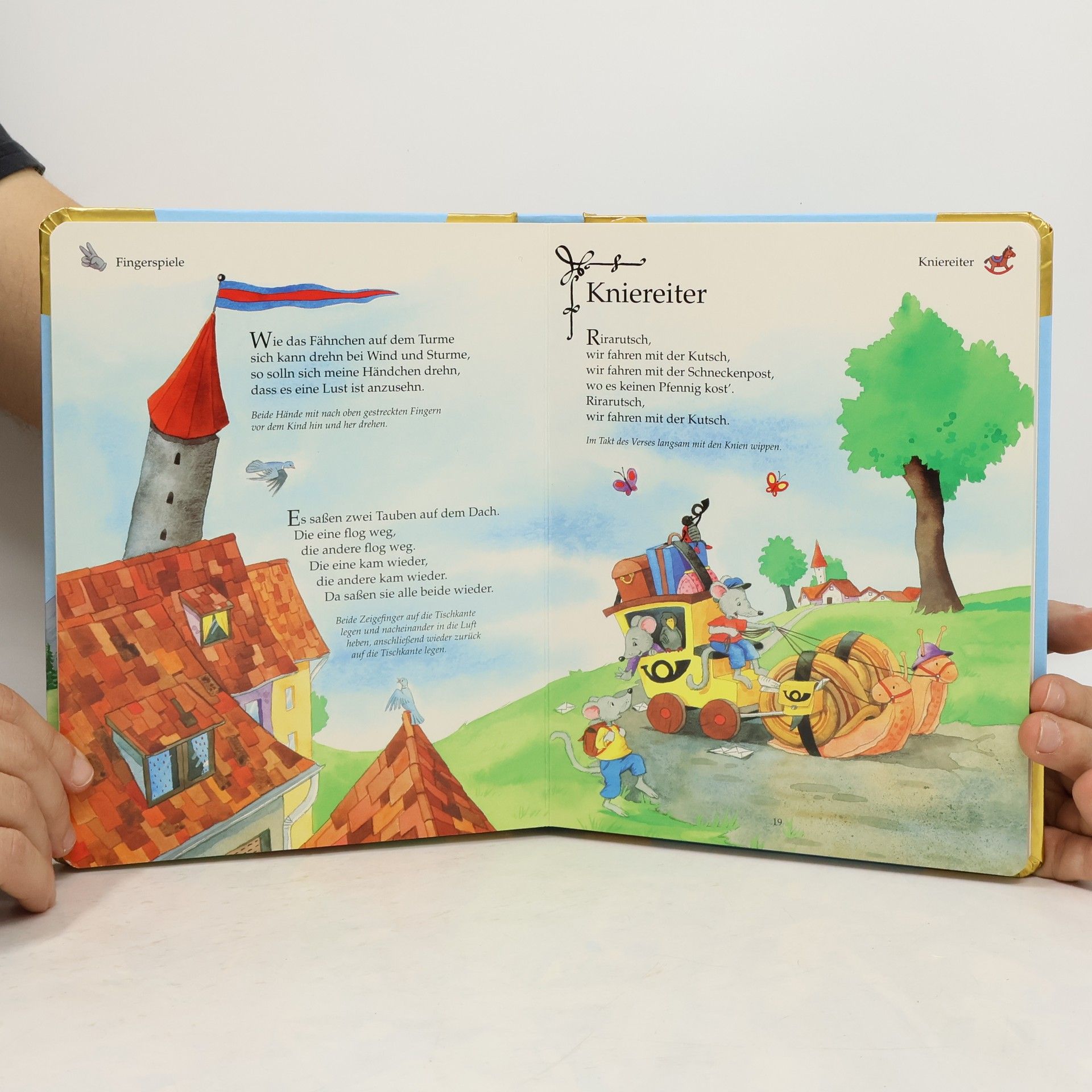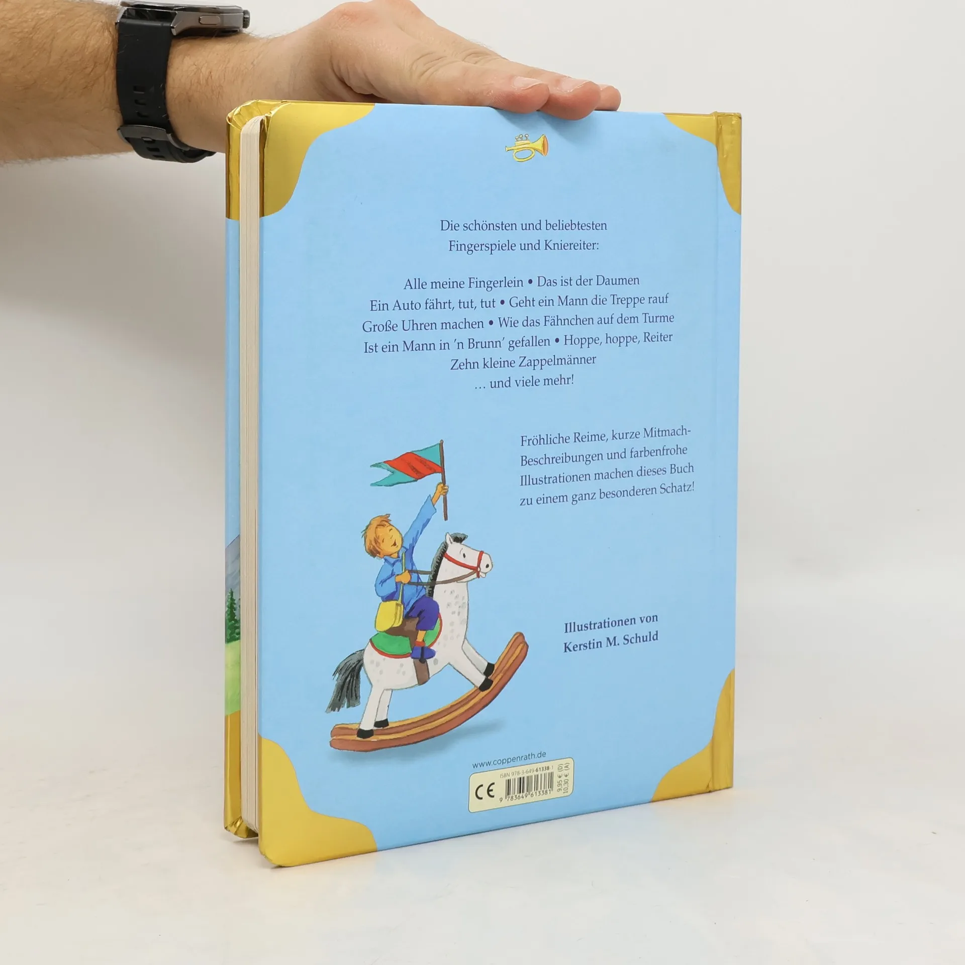 Das Buch enthält eine Sammlung der schönsten und beliebtesten Fingerspiele und Kniereiter, wie „Alle meine Fingerlein“ und „Zehn kleine Zappelmänner“. Mit fröhlichen Reimen, kurzen Mitmach-Beschreibungen und bunten Illustrationen wird es zu einem besonderen Schatz für Kinder.