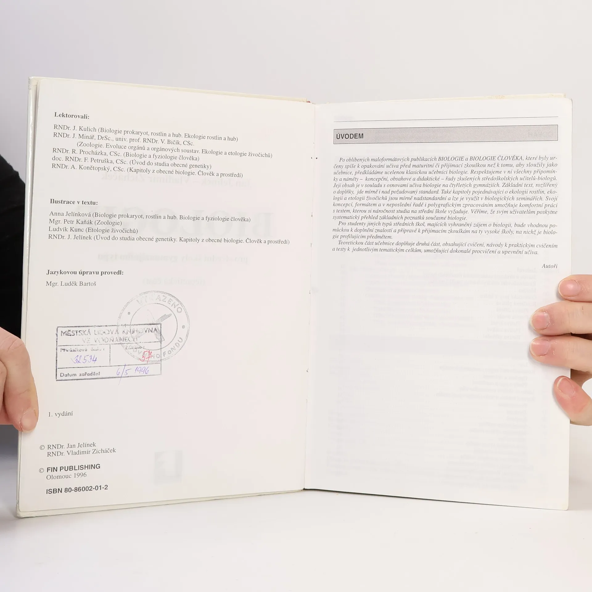 V knize jsou obsaženy černobílé perokresby, které slouží jako názorná pomůcka k lepšímu porozumění textu. Učebnice je určena pro čtyřletá gymnázia a pro vyšší ročníky víceletých gymnázií. Učebnice také slouží jako vhodná pomůcka pro přípravu k přijímacím zkouškám na vysokou školu. Obsah: Biologie prokaryot, rostlin a hub, Ekologie rostlin a hub, Zoologie, Biologie a fyziologie člověka, Úvod do studia obecné genetiky, Vybrané kapitoly z obecné biologie, Člověk a prostředí
