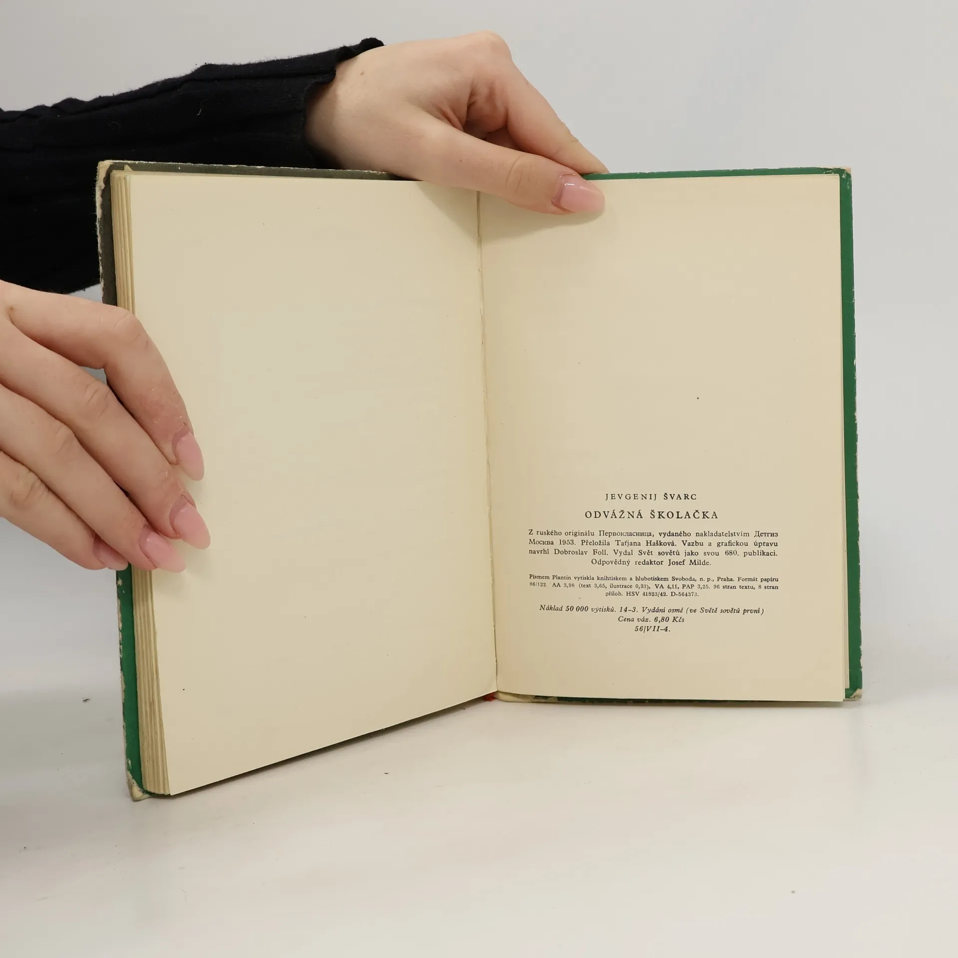 Příběh o "odvážné školačce" Marušce Orlovové nevypráví jen o statečném, pilném a svědomitém moskevském děvčátku a příhodách, které zažilo během jednoho roku jako žačka první třídy, ale zachycuje především celé radostné ovzduší sovětské školy, která se snaží dát dětemto nejlepší. Čtenáři sledují malou Marušku od prvních kroků do školní budovy (kam se jde dát dokonce z netrpělivosti sama bez maminky zapsat), přes první službu, první známku, oslavu svátku, novoroční prázdniny i nešťastný výlet za Moskvu s blouděním v zasněžených lesích až do radostné chvíle závěrečného vysvědčení, které znamená postup do 2. třídy. Kniha - stejně jako stejnojmenný film, podle něhož je napsána - ukazuje dětem život ve škole, usnadňuje první leckdy obtížnou cestu z rodinného závětří do školních lavic, pomáhá škole své čtenáře vychovávat. - Toto vyd., určené za mimočítankovou četbu 2. roč. nár. škol, doprovází jednak závěrečné ponaučení pro děti "Jak budeme číst Odvážnou školačku", jednak Slovo k učitelům a rodičům (rozbor knihy, rozbor hlav. postav - Marušky a učitelky) a Methodické poznámky.