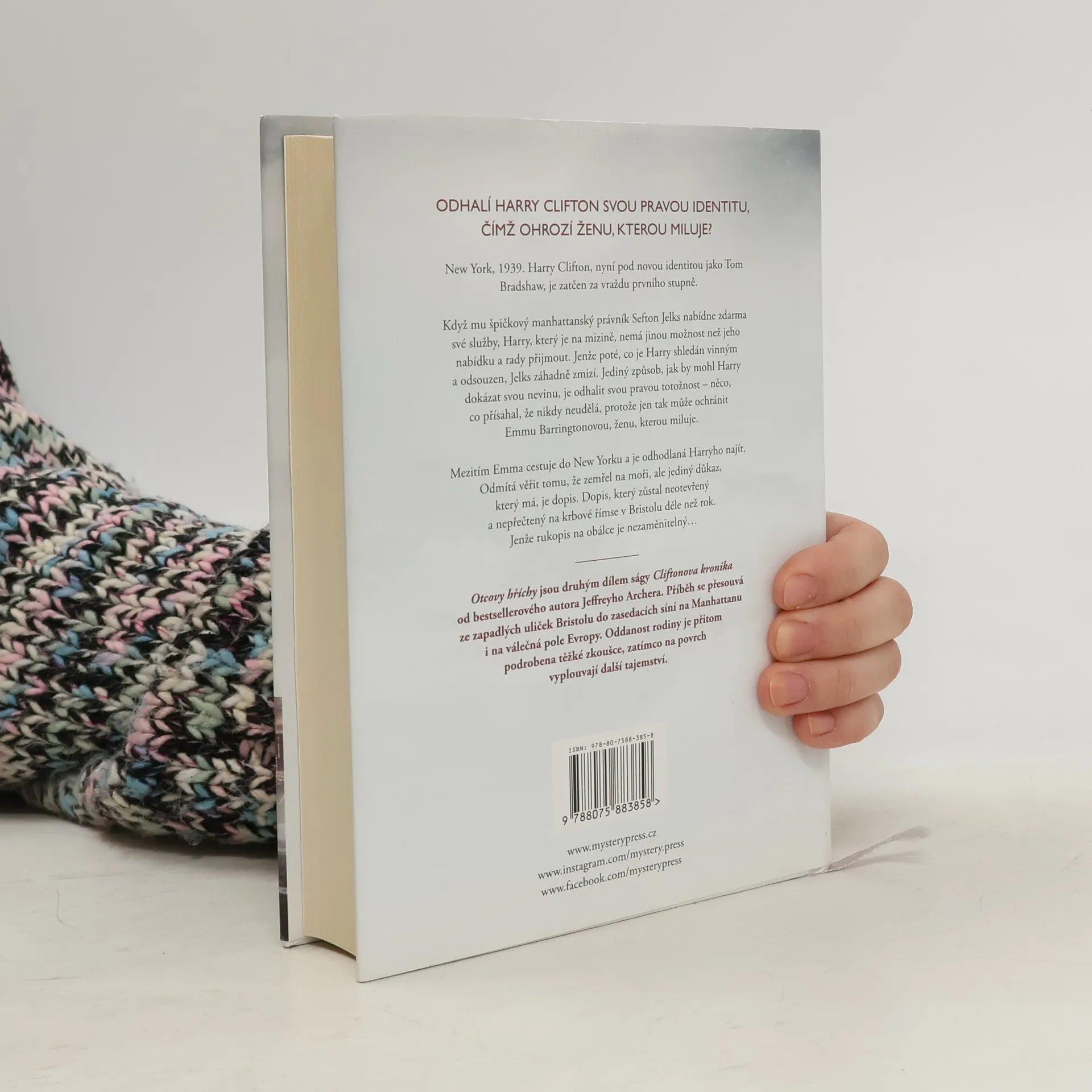 ODHALÍ HARRY CLIFTON SVOU PRAVOU IDENTITU, ČÍMŽ OHROZÍ ŽENU, KTEROU MILUJE? New York, 1939. Harry Clifton, nyní pod novou identitou jako Tom Bradshaw, je zatčen za vraždu prvního stupně. Když mu špičkový manhattanský právník Sefton Jelks nabídne zdarma své služby, Harry, který je na mizině, nemá jinou možnost než jeho nabídku a rady přijmout. Jenže poté, co je Harry shledán vinným a odsouzen, Jelks záhadně zmizí. Jediný způsob, jak by mohl Harry dokázat svou nevinu, je odhalit svou pravou totožnost – něco, co přísahal, že nikdy neudělá, protože jen tak může ochránit Emmu Barringtonovou, ženu, kterou miluje. Mezitím Emma cestuje do New Yorku a je odhodlaná Harryho najít. Odmítá věřit tomu, že zemřel na moři, ale jediný důkaz, který má, je dopis. Dopis, který zůstal neotevřený a nepřečtený na krbové římse v Bristolu déle než rok. Jenže rukopis na obálce je nezaměnitelný… ______ Otcovy hříchy jsou druhým dílem ságy Cliftonova kronika od bestsellerového autora Jeffreyho Archera. Příběh se přesouvá ze zapadlých uliček Bristolu do zasedacích síní na Manhattanu i na válečná pole Evropy. Oddanost rodiny je přitom podrobena těžké zkoušce, zatímco na povrch vyplouvají další tajemství.