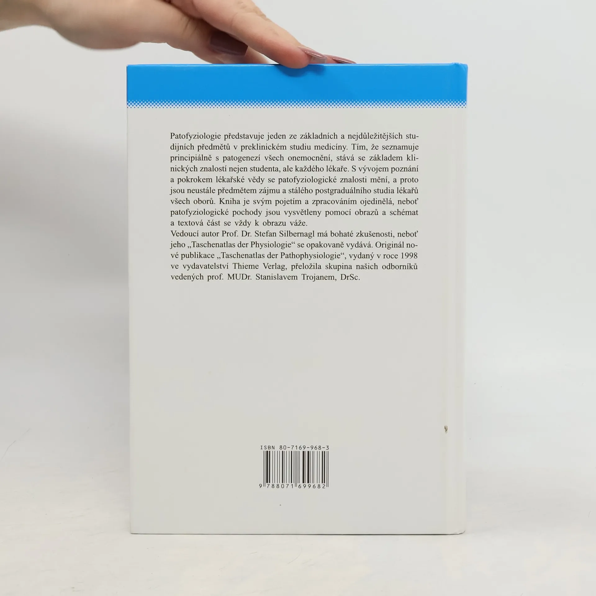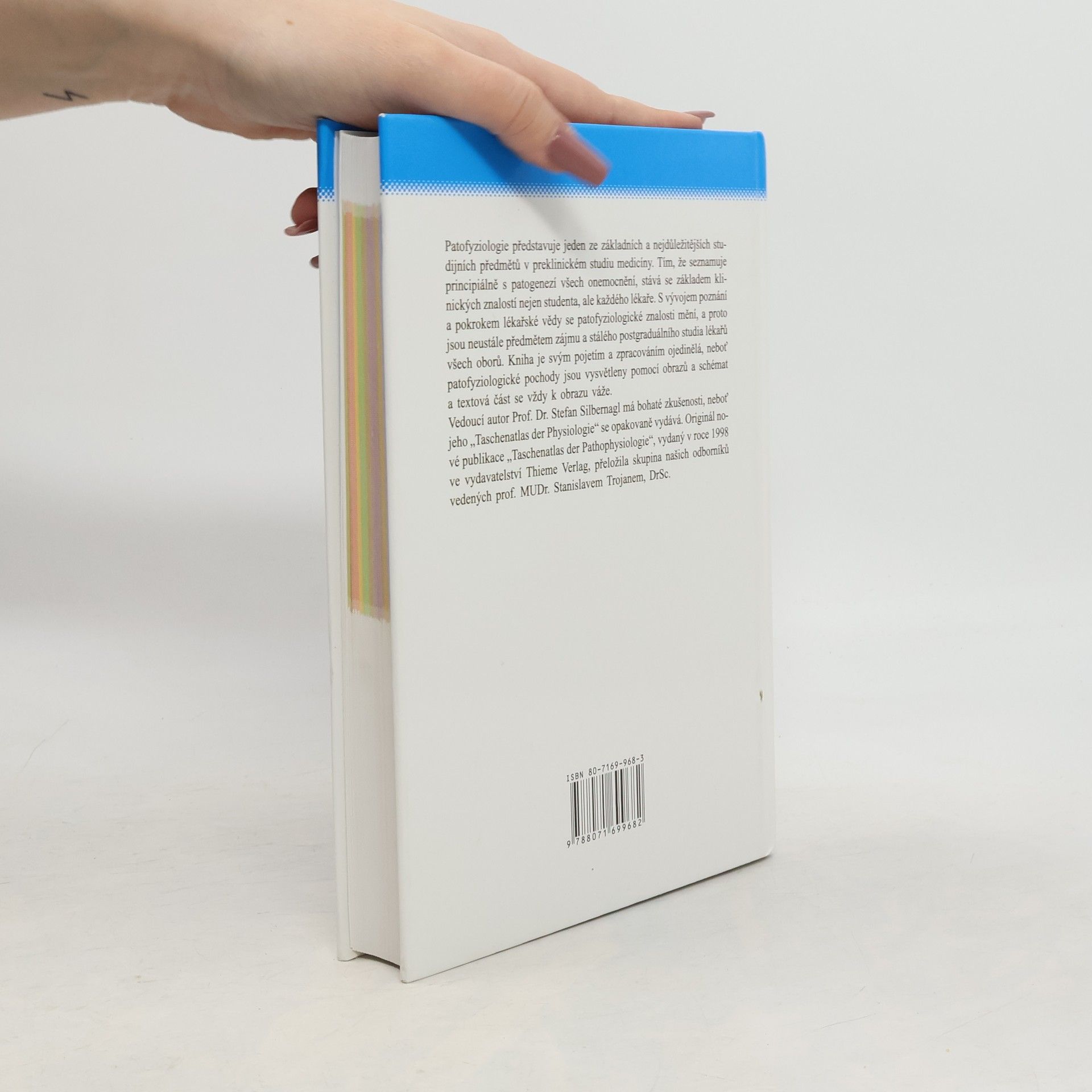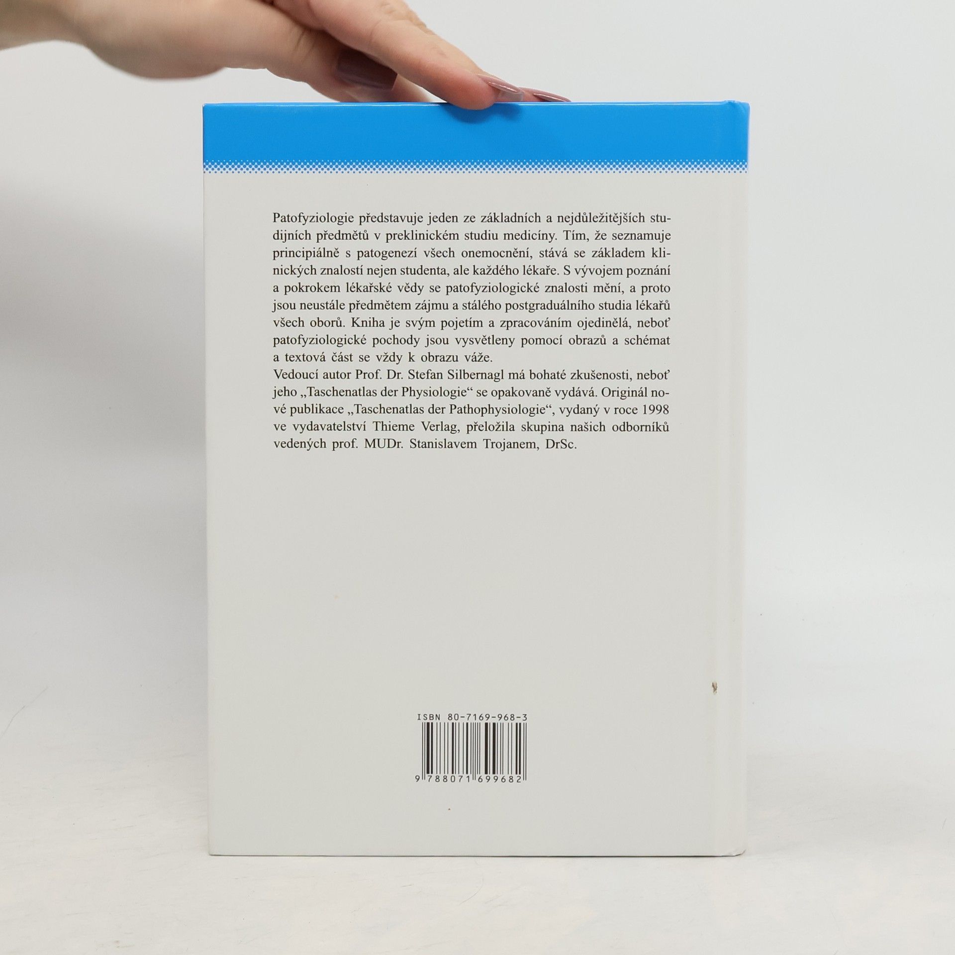 Patofyziologie představuje jeden ze základních a nejdůležitějších studijních předmětů v preklinickém studiu medicíny. Tím, že seznamuje principiálně s patogenezí všech onemocnění, stává se základem klinických znalostí nejen studenta, ale každého lékaře. S vývojem poznání a pokrokem lékařské vědy se patofyziologické znalosti mění, a proto jsou neustále předmětem zájmu a stálého postgraduálního studia lékařů všech oborů. Kniha je svým pojetím a zpracováním ojedinělá, neboť patofyziologické pochody jsou vysvětleny pomocí obrazů a schémat a textová část se vždy váže k obrazu. Vedoucí autor prof. Dr. Stefan Silbernagl má bohaté zkušenosti, neboť jeho „Taschenatlas der Physiologie“ se opakovaně vydává. Originál nové publikace „Taschenatlas der Pathophysiologie“ vydaný v roce 1998 ve vydavatelství Thieme Verlag přeložila skupina odborníků vedených prof. MUDr. Stanislavem Trojanem, DrSc.