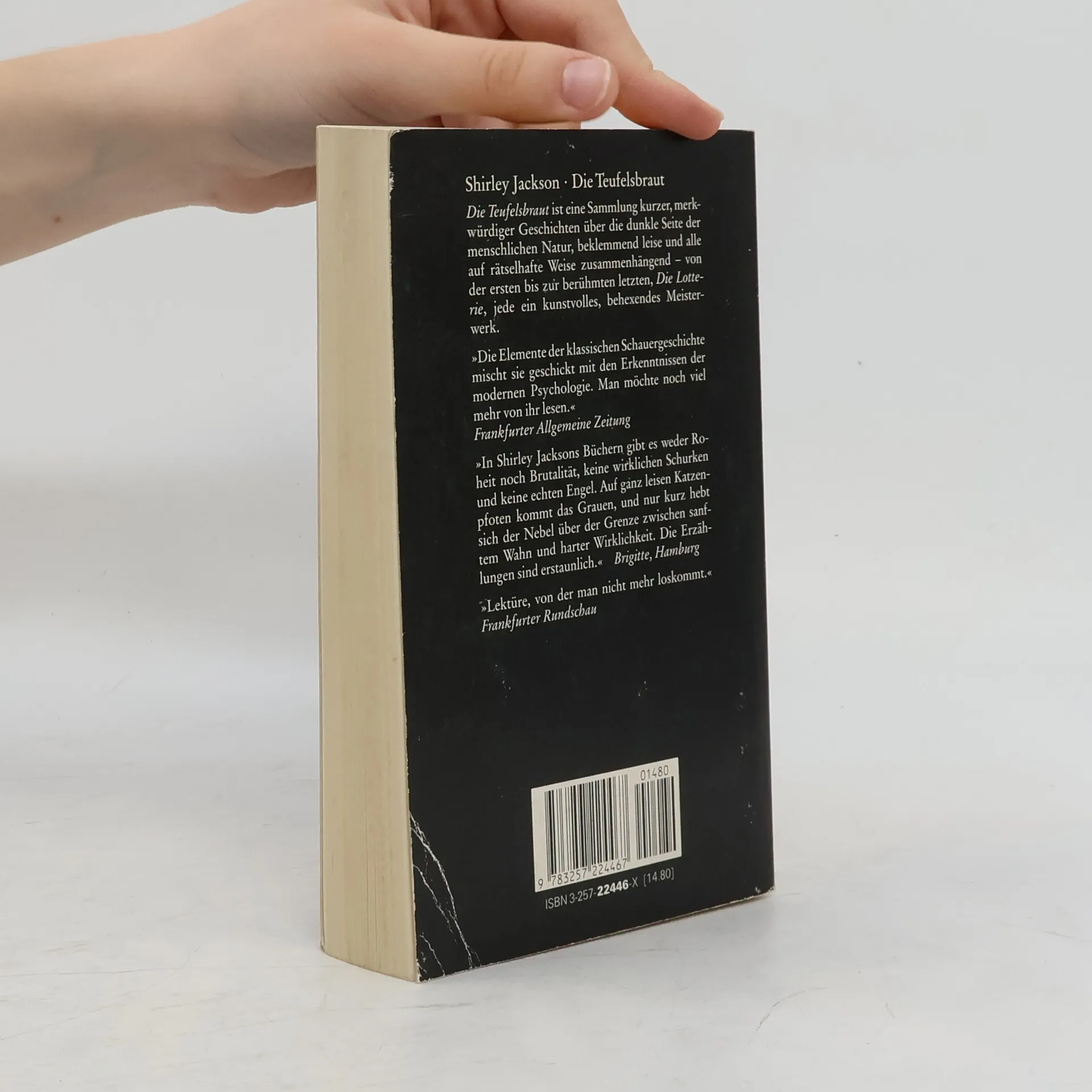 “Die Teufelsbraut” ist eine Sammlung kurzer, merkwürdiger Geschichten über die dunkle Seite der menschlichen Natur. Geschichten über Wahnsinn, unglückliche Liebe und Angst, beklemmend leise und alle auf rätselhafte Weise zusammenhängend – von der ersten bis zur berühmten letzten “The Lottery” jede ein kunstvolles, behexendes Meisterwerk. Dieser Band enthält 25 Kurzgeschichten: "Die Berauschten", "Die Teufelsbraut", "Wie Mutter es immer gemacht hat", "Probe aufs Exempel", "Die Frau aus dem Village", "Mein Leben bei R.H. Macy", "Die Hexe", Die Verräterin", "Nach dir, mein lieber Alphonse", "Charles", "Nachmittag in Leinen", "Der Garten", "Dorothy, meine Großmutter und die Matrosen", "Zwiegespräch", "Elizabeth", "Eine gute alte Firma", "Die Puppe", "Sieben Arten von Ambiguität", "Komm und tanz mit mir in Irland", "Natürlich", "Salzsäule", Männer mit ihren großen Schuhen", "Der Zahn", "Ein Brief von Jimmy" und "Die Lotterie".