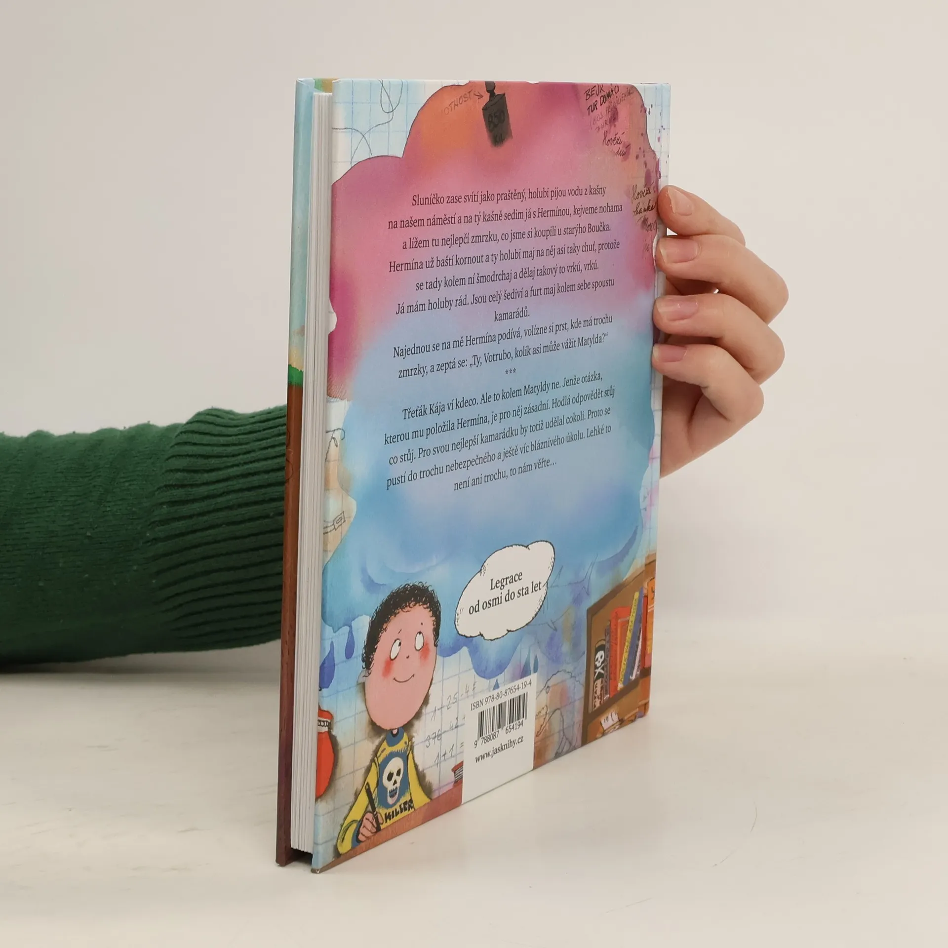 Sluníčko zase svítí jako praštěný, holubi pijou vodu z kašny na našem náměstí a na tý kašně sedim já s Hermínou, kejveme nohama a lížem tu nejlepčí zmrzku, co jsme si koupili u starýho Boučka. Hermína už baští kornout a ty holubi maj na něj asi taky chuť, protože se tady kolem ní šmodrchaj a dělaj takový to vrkú, vrkú. Já mám holuby rád. Jsou celý šediví a furt maj kolem sebe spoustu kamarádů. Najednou se na mě Hermína podívá, volízne si prst, kde má trochu zmrzky, a zeptá se: „Ty, Votrubo, kolik asi může vážit Matylda?“ *** Třeťák Kája umí kdeco. Vládne skvělou dětštinou a dokonale komentuje všechno, co vidí. Ale to o Matyldě neví. Jenže otázka, kterou mu položila spolužačka Hermína, je pro něj zásadní. Hodlá ji zodpovědět stůj co stůj. Pro svou nejlepší kamarádku by totiž udělal cokoli. Proto se pustí do trochu nebezpečného a ještě víc bláznivého úkolu. Lehké to nemá ani trochu, tomu můžete věřit…