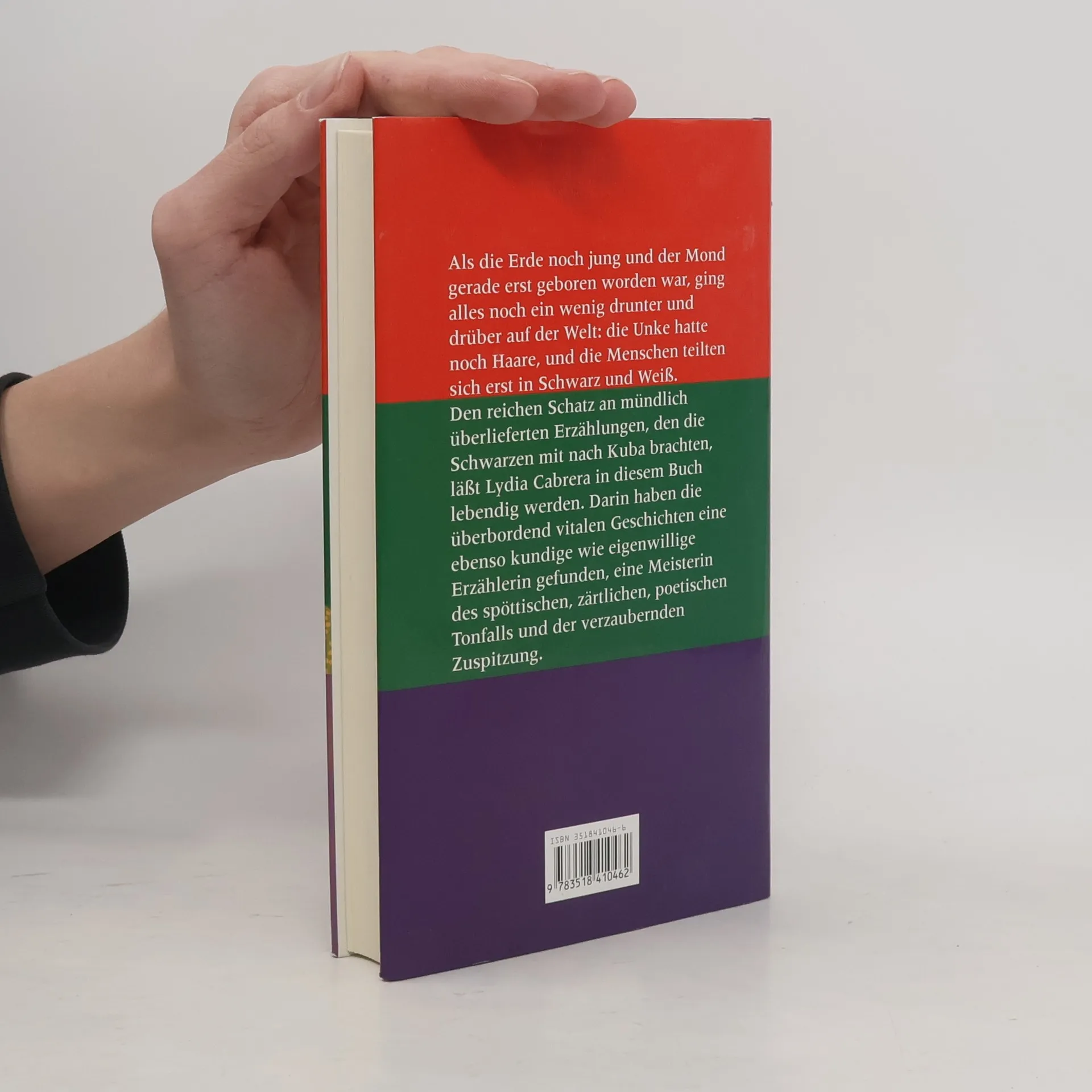 Lydia Cabrera erzählt in ihren Geschichten, die sie als Kind und junge Frau hörte, von der karibischen Welt, in der Menschen- und Tierwelt verschwimmen. Ihre amoralischen Erzählungen sind voller Lebensfreude, Humor und spöttischer Kritik an menschlichen Schwächen, ohne sich um moralische Belehrung zu kümmern.