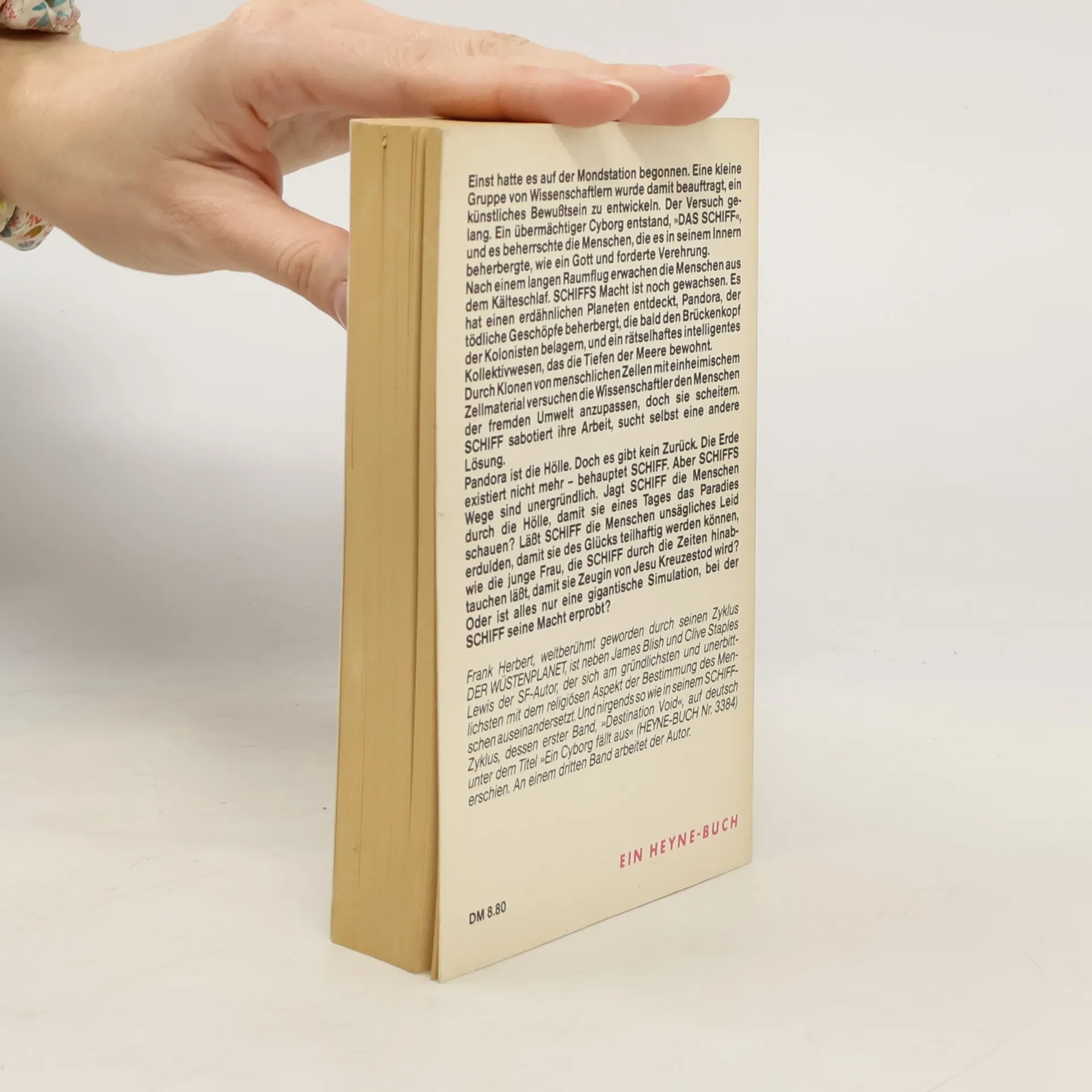 Einst hatte es auf der Mondstation begonnen. Eine kleine Gruppe von Wissenschaftlern wurde damit beauftragt, ein künstliches Bewußtsein zu entwickeln. Der Versuch gelang. Ein übermächtiger Cyborg, "DAS SCHIFF", und es behrberrschte die Menschen, die es in seinem Inneren beherbergte, wie ein Gott und forderte Verehrung. Nach einem langen Raumflug erwachen die Menschen aus dem Kälteschlaf. SCHIFFS Macht ist noch gewachsen. Es hat einen erdähnlichen Planeten entdeckt, Pandora, der tödliche Geschöpfe beherbergt, die bald den Brückenkopf der Kolonisten belagern und ein rätselhaftes intelligentes Kollektivwesen, das die Tiefen der Meere bewohnt. Durch Klonen menschlicher Zellen mit einheimischem Zellmataerial versuchen die Wissenschaftler den Menschen der fremden Umwelt anzupassen, doch sie scheitern. SCHIFF sabotiert ihre Arbeit, such selbst eine andere Lösung. Pandora ist die Hölle. Doch es gibt kein Zurück. Die Erde existiert nicht mehr - behauptet SCHIFF. Aber SCHIFFS Wege sind unergründlich. Jagt SCHIFF die Menschen durch die Hölle, damit sie eines Tages das Paradies schauen? Läßt SCHIFF die Menschen unsägliches Leid erdulden, damit sie des Glücks teilhaftig werden können, wie die junge Frau, die SCHIFF durch die Zeiten hinabtauchen läßt, damit sie Zeugin von Jesu Kreuzestod wird? Oder ist alles nue eine gigantische Simulation, bei der SCHIFF seine Macht erprobt?