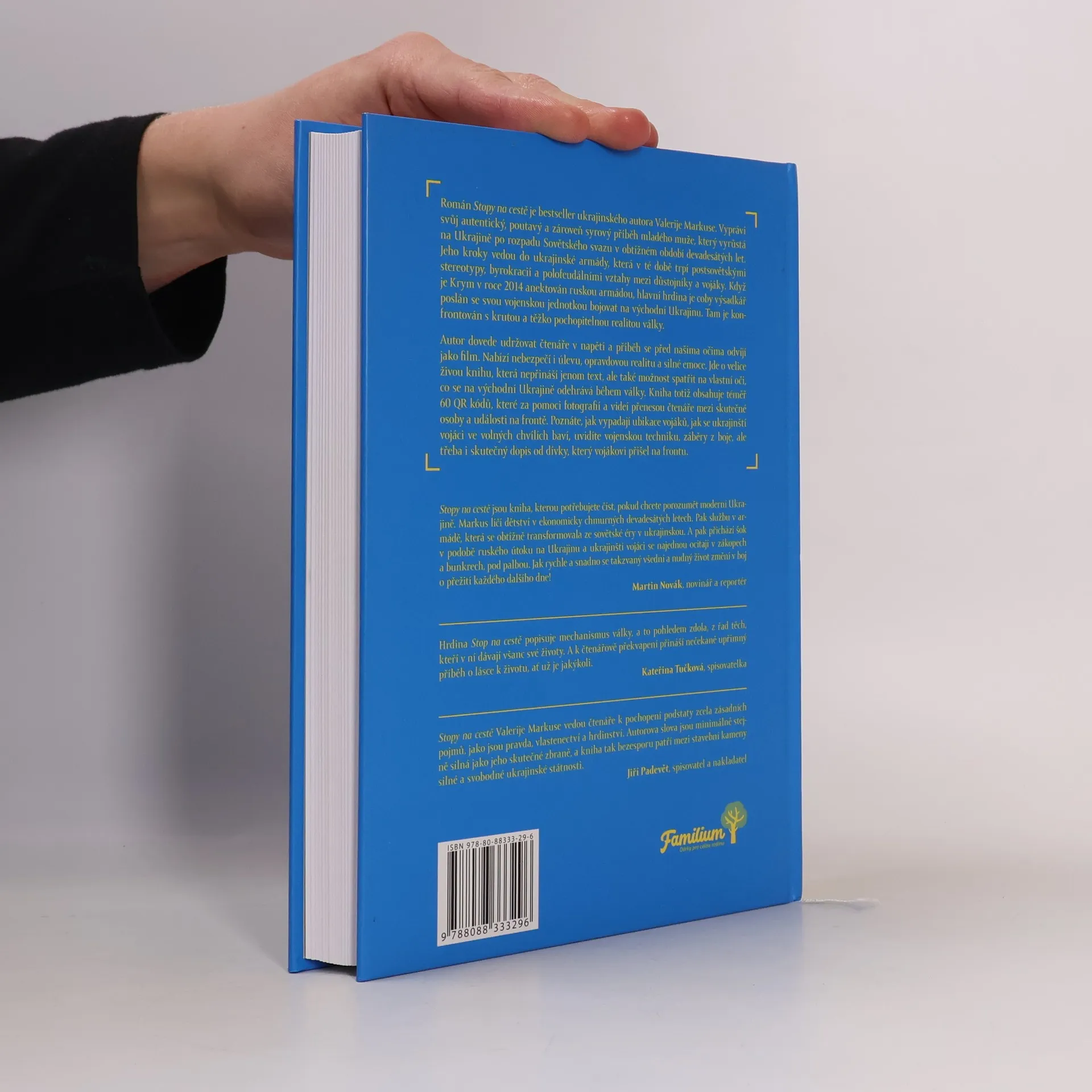 Román Stopy na cestě je bestseller ukrajinského autora Valerije Markuse. Vypráví svůj autentický, poutavý a zároveň syrový příběh mladého muže, který vyrůstá na Ukrajině po rozpadu Sovětského svazu v obtížném období devadesátých let. Jeho kroky vedou do ukrajinské armády, která v té době trpí postsovětskými stereotypy, byrokracií a polofeudálními vztahy mezi důstojníky a vojáky. Když je Krym v roce 2014 anektován ruskou armádou, hlavní hrdina je coby výsadkář poslán se svou vojenskou jednotkou bojovat na východní Ukrajinu. Tam je konfrontován s krutou a těžko pochopitelnou realitou války. Autor dovede udržovat čtenáře v napětí a příběh se před našima očima odvíjí jako film. Nabízí nebezpečí i úlevu, opravdovou realitu a silné emoce. Jde o velice živou knihu, která nepřináší jenom text, ale také možnost spatřit na vlastní oči, co se na východní Ukrajině odehrává během války. Kniha totiž obsahuje téměř 60 QR kódů, které za pomoci fotografií a videí přenesou čtenáře mezi skutečné osoby a události na frontě. Poznáte, jak vypadají ubikace vojáků, jak se ukrajinští vojáci ve volných chvílích baví, uvidíte vojenskou techniku, záběry z boje, ale třeba i skutečný dopis od dívky, který vojákovi přišel na frontu.