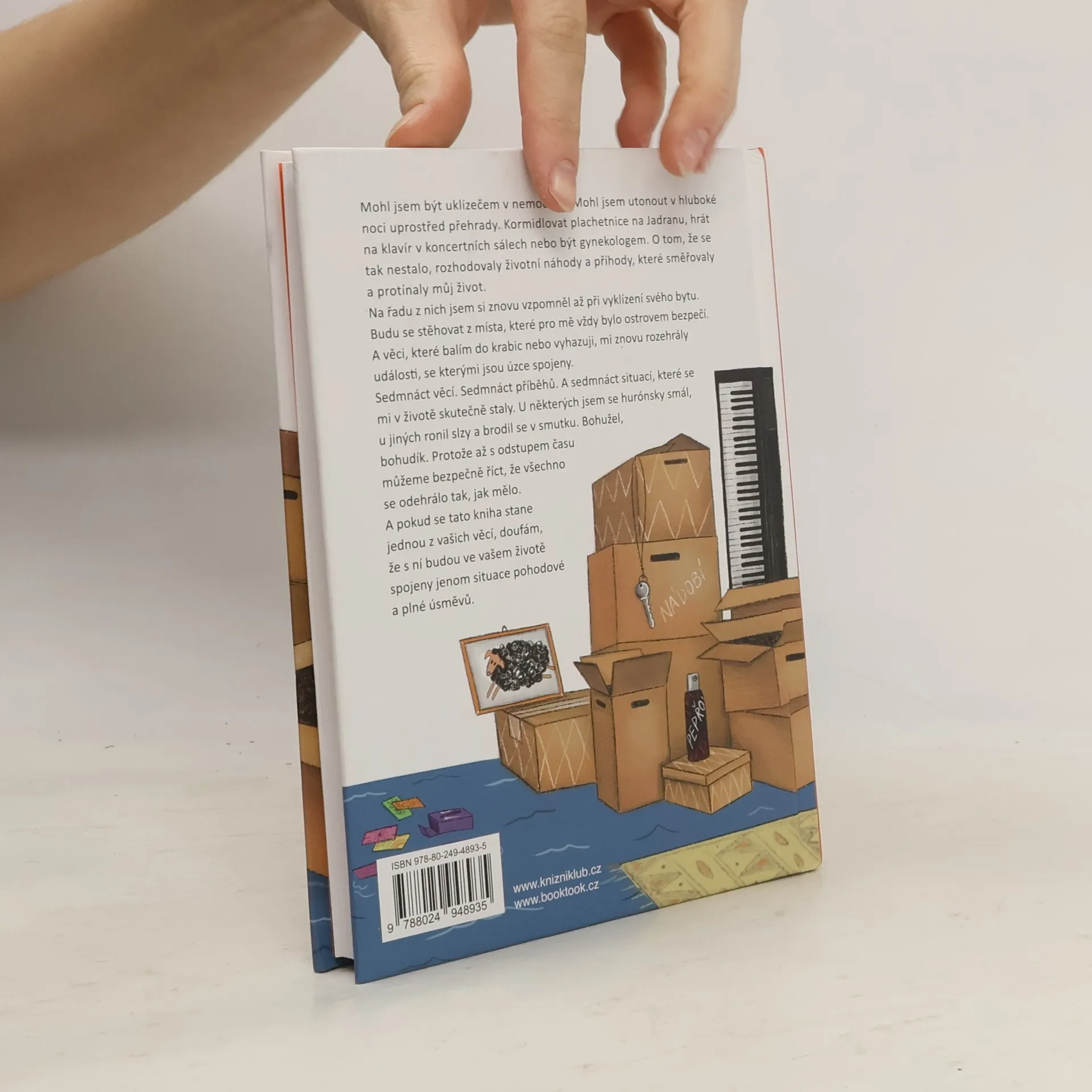 Mohl jsem být uklízečem v nemocnici. Mohl jsem utonout v hluboké noci uprostřed přehrady. Kormidlovat plachetnice na Jadranu, hrát na klavír v koncertních sálech nebo být gynekologem. O tom, že se tak nestalo, rozhodovaly životní náhody a příhody, které směřovaly a protínaly můj život. Na řadu z nich jsem si znovu vzpomněl až při vyklízení svého bytu. Budu se stěhovat z místa, které pro mě vždy bylo ostrovem bezpečí. A věci, které balím do krabic nebo vyhazuji, mi znovu rozehrály události, se kterými jsou úzce spojeny. Sedmnáct věcí. Sedmnáct příběhů. A sedmnáct situací, které se mi v životě skutečně staly. U některých jsem se hurónsky smál, u jiných ronil slzy a brodil se v smutku. Bohužel, bohudík. Protože až s odstupem času můžeme bezpečně říct, že všechno se odehrálo tak, jak mělo. A pokud se tato kniha stane jednou z vašich věcí, doufám, že s ní budou ve vašem životě spojeny jenom situace pohodové a plné úsměvů.