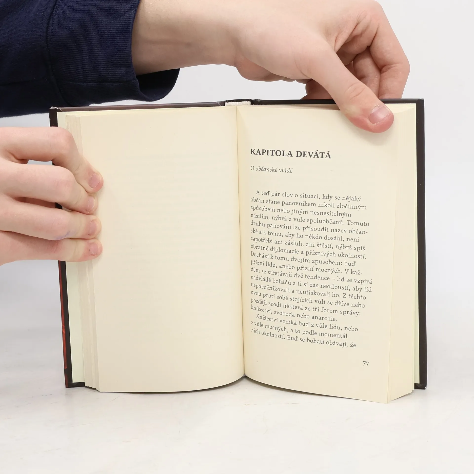 Autor se ve svém díle zamýšlí nad tím, čím je člověk jako občan ve státě. Podle Machiavelliho řídí člověk své činy logickými a rozumovými kritérii, nikoli morálními. Klíčovou osobou ve státě je panovník, jehož ideálním cílem je chvályhodný cíl, přičemž způsob dosažení cíle může být jakýkoliv. Machiavelli se zaměřuje na vládu v knížectvích, která dělí na dědičná a nově dobytá. V dědičných státech je panovníkovi snazší vládnout, protože navazuje na tradice svých předků, což mu získává oblibu mezi lidmi. Smíšená knížectví čelí problémům, pokud mají rozdílnou kulturu či jazyk. Machiavelli navrhuje různé způsoby řešení, jako například přesídlení obyvatel. Panovník musí být prozíravý a buď zahrnout protivníky laskavostmi, nebo je zničit. Může se stát panovníkem i z vůle občanů, přičemž existují tři formy správy: knížectví, svoboda a anarchie. V krizových časech je lepší se utkat v otevřeném boji, pokud to okolnosti dovolí. Machiavelli také zvažuje roli osudu v lidském životě, přičemž tvrdí, že úspěch závisí z poloviny na osudu a z poloviny na lidské iniciativě. Úspěšný je ten, kdo se přizpůsobí podmínkám. Autor věnoval své dílo Lorenzovi Medicejskému.