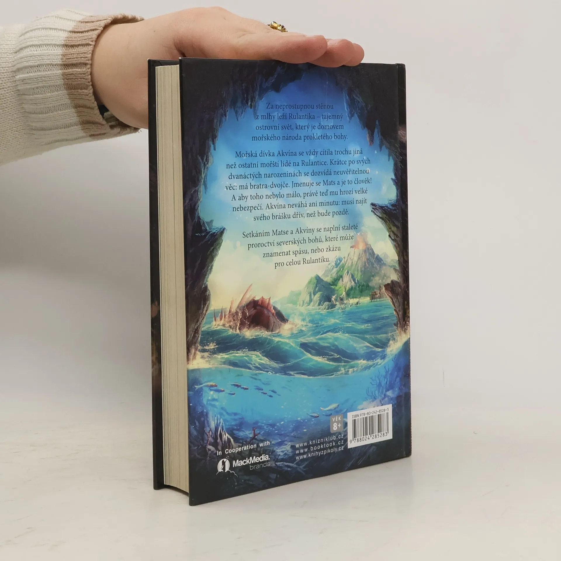 Ukrytá za neprostupnou stěnou z mlhy leží Rulantika – ostrovní svět, jenž je domovem mořského národa, který však ohrožuje kletba bohů. Když se mořská dívka Akvína krátce po svých dvanáctých narozeninách dozví, že má ve světě lidí bratra-dvojče, nemůže tomu uvěřit. A aby toho nebylo málo, zjistí, že mu jde kvůli strašlivé kletbě o život. Akvína neváhá ani minutu a rozhodne se ho zachránit. Vrhne se po hlavě do největšího dobrodružství svého života. Netuší však, že jejich setkáním se naplní pradávné proroctví severských bohů, které může znamenat spásu, ale možná také zkázu pro celý ostrovní svět Rulantika. Pro děti od 10 let.