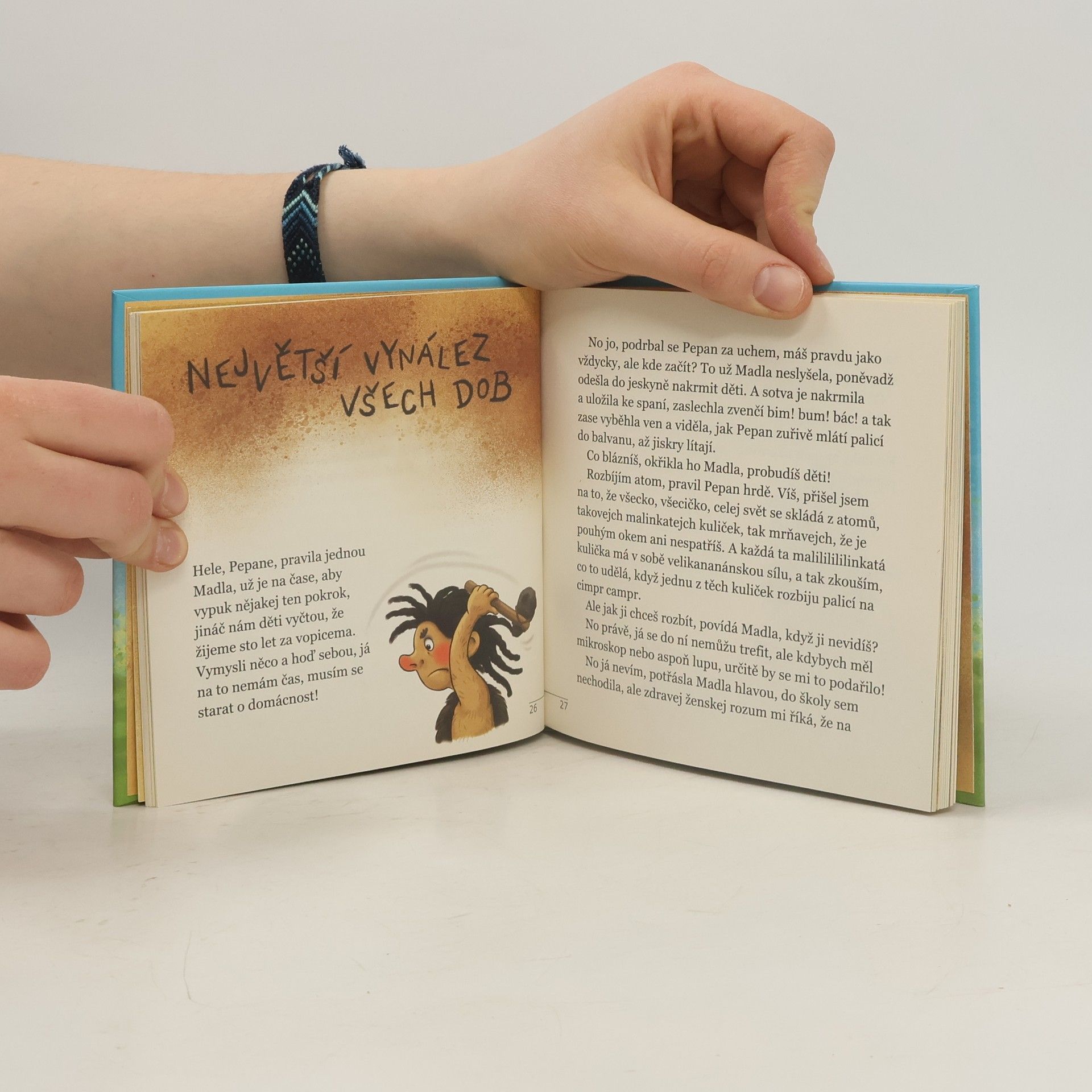 Je to kniha veskrze humorná hlavně pro toho, kdo už něco ví o našem světě. Například že jsme žili už v pravěku a naši prapředkové Pepan s Madlou měli tolik rozumu, že uměli zařídit, aby člověku bylo blaze a užíval si radostí života. Přesně tuto atmosféru navozují i důvtipné barevné ilustrace Veroniky Balcarové a ukazují, že na počátku vypadal lidský svět jako ráj.