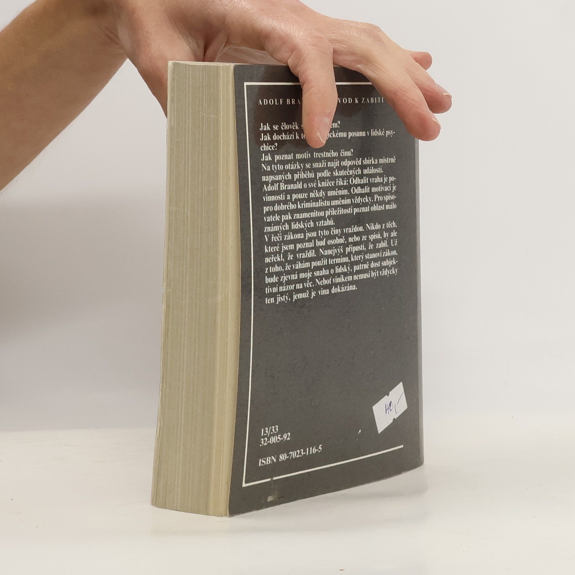 Kniha kriminálních příběhů napsaných podle skutečných událostí. Branaldova knížka z literatury faktu zpracovává 12 případů z černé kroniky naší doby, z trestných činů, pro které má kriminalista nejpřísnější termín: vražda. Spisovatel však užívá záměrně jen termínu zabití, neboť jeho hlavním cílem je odhalení motivace činu pachatele a jeho komplikovaných psychických pochodů v mezilidských vztazích. Vznikly tak citlivé psychologické portréty těch, kdo vraždili pro peníze, z nenávisti, z cynismu, ale třeba i ze strachu nebo ze soucitu: - Klec - Médea - Zlá myšlenka - Nepřekonatelný odpor - Štastný a veselý Nový rok - Lord Huligan - Náhradní volno - Volná jízda - Východ z nouze - Smutná láska - Klub důchodců - Škola lhostejnosti