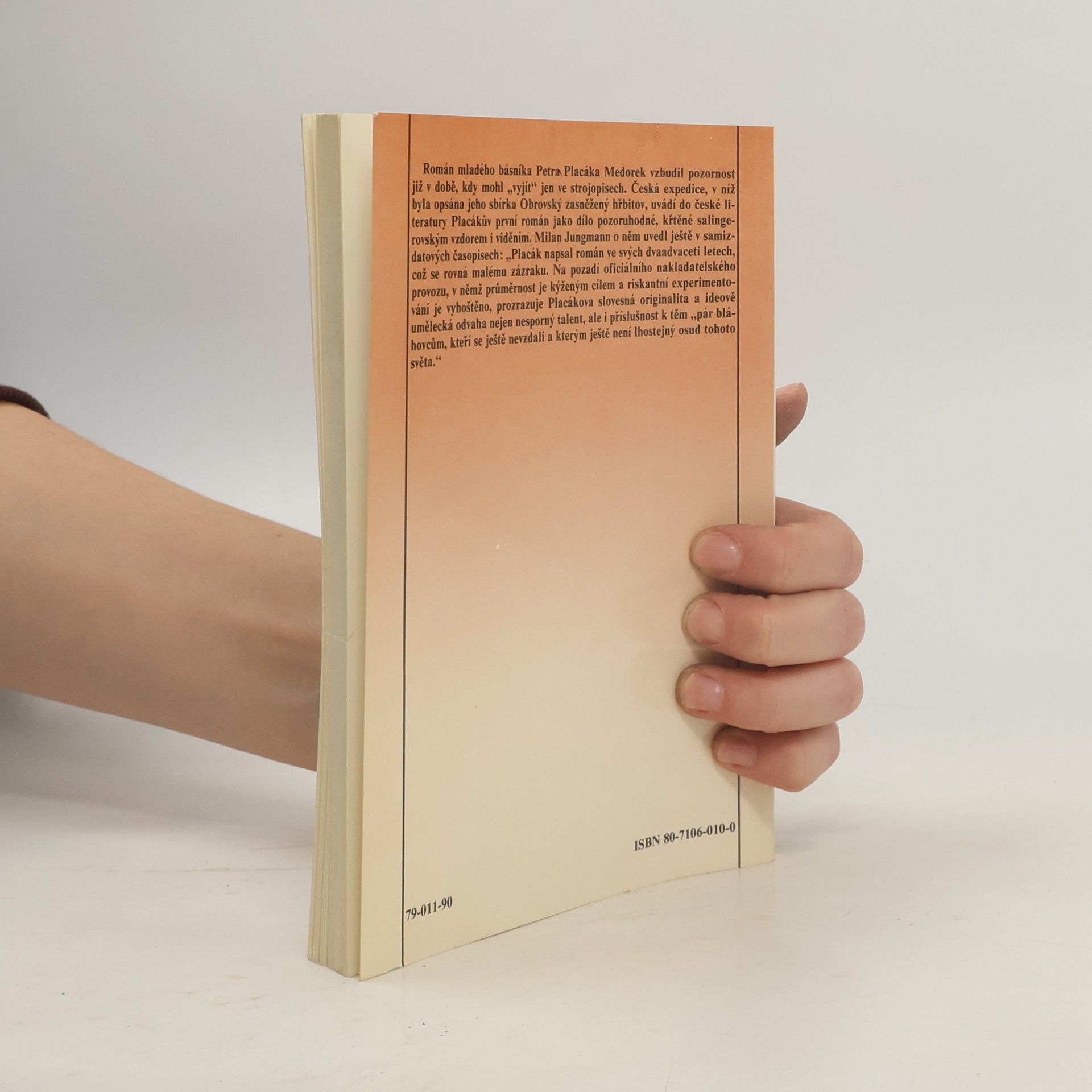 Román Medorek vyšel poprvé v samizdatu v roce 1985 a už tehdy vyvolal u disidentské obce značný rozruch. Za zaznamenání stojí názor bohemisty Alexandra Sticha, který Medorka pasoval na „jednu z nejlepších českých próz 80. let“. Tak či onak, kontroverznost si Placákův zběsilý románový debut udržel dodnes. I v roce 2010 působí tato syrová generační výpověď stejně „punkově“ a nespoutaně jako před čtvrtstoletím. Román poprvé vychází v úplnosti, se všemi původními ilustracemi Pavla Reisenauera.