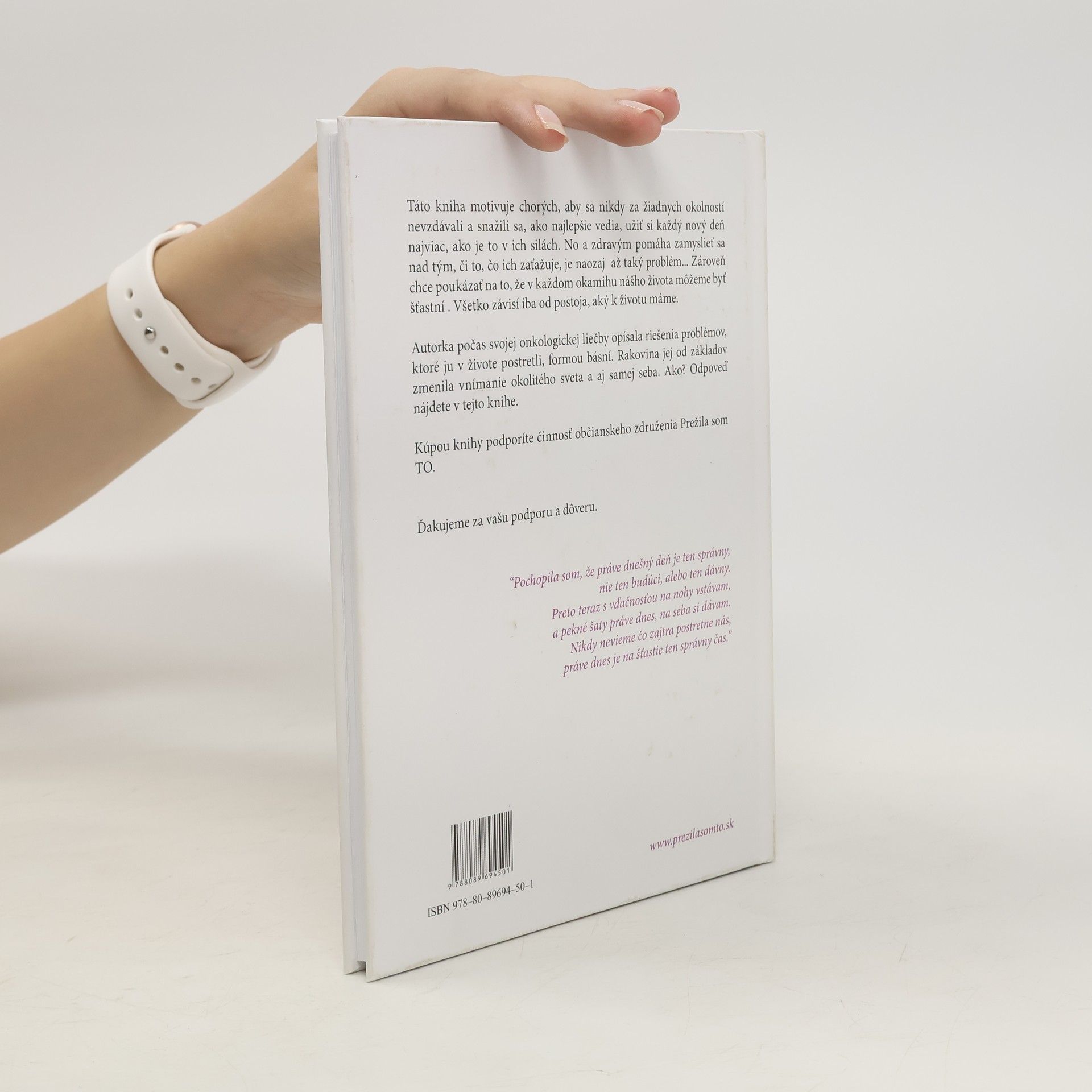 Táto kniha motivuje chorých, aby sa nikdy za žiadnych okolností nevzdávali a snažili sa, ako najlepšie vedia, užiť si každý nový deň najviac, ako je to v ich silách. No a zdravým pomáha zamyslieť sa nad tým, či to, čo ich zaťažuje, je naozaj až taký problém... Zároveň chce poukázať na to, že v každom okamihu nášho života môžemebyť šťastní. Všetko závisí iba od postoja, aký k životu máme.