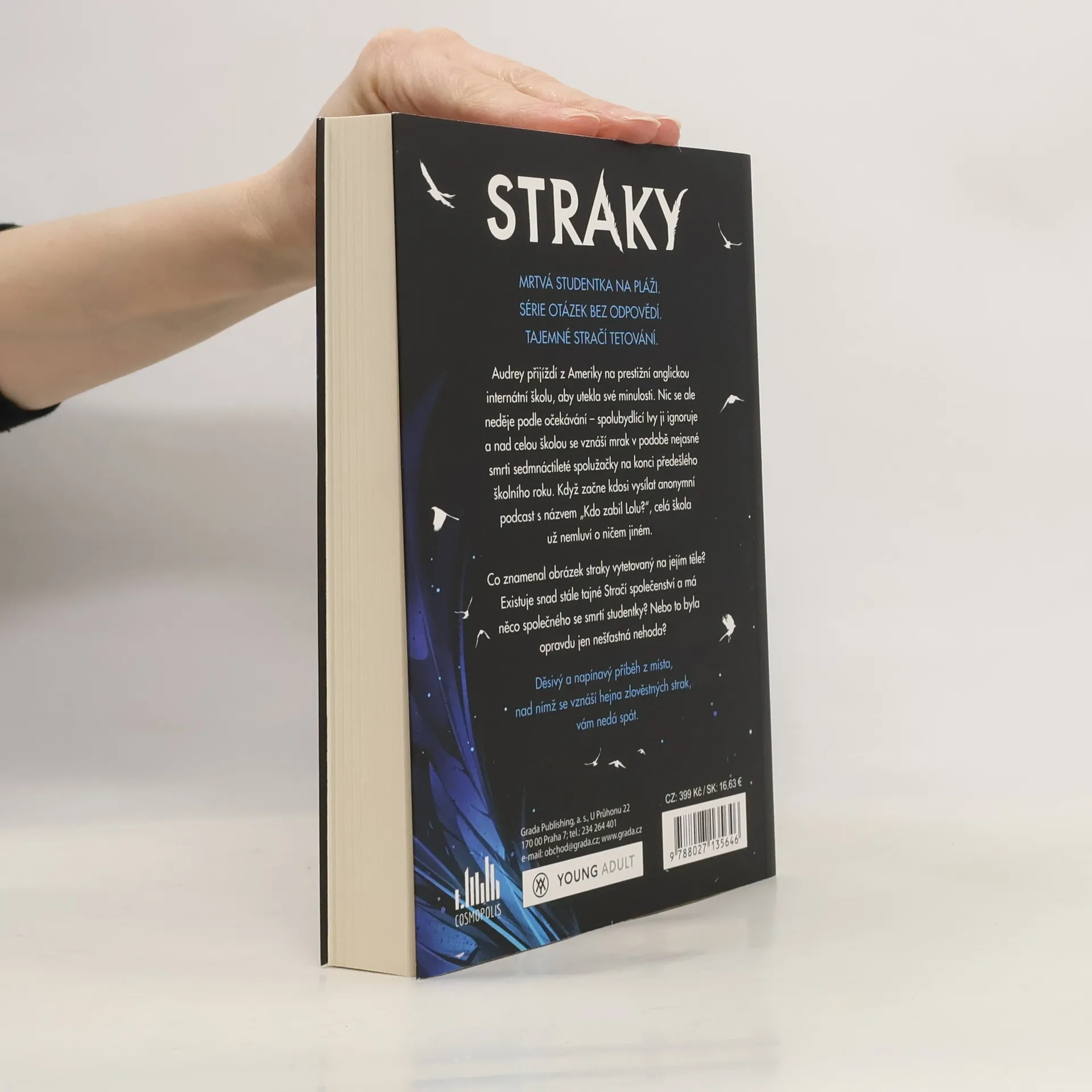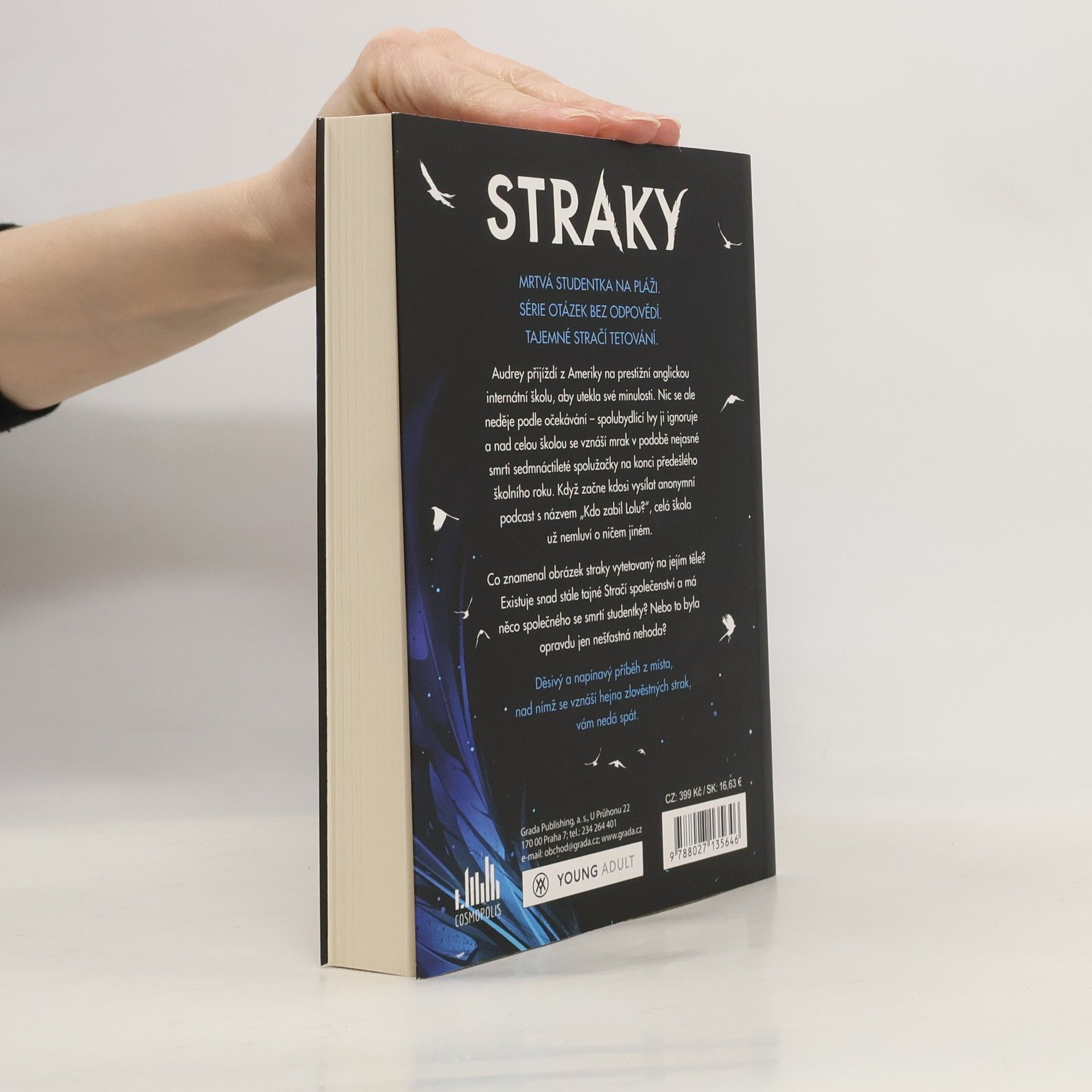 Ty budeš další!MRTVÁ STUDENTKA NA PLÁŽI.SÉRIE OTÁZEK BEZ ODPOVĚDÍ.TAJEMNÉ STRAČÍ TETOVÁNÍ. Audrey přijíždí z Ameriky na prestižní anglickou internátní školu, aby utekla své minulosti. Nic se ale neděje podle očekávání – spolubydlící Ivy ji ignoruje a nad celou školou se vznáší mrak v podobě nejasné smrti sedmnáctileté spolužačky na konci předešlého školního roku. Když začne kdosi vysílat anonymní podcast s názvem „Kdo zabil Lolu?“, celá škola už nemluví o ničem jiném.Co znamenal obrázek straky vytetovaný na jejím těle? Existuje snad stále tajné Stračí společenství a má něco společného se smrtí studentky? Nebo to byla opravdu jen nešťastná nehoda?Děsivý a napínavý příběh z místa, nad nímž se vznáší hejna zlověstných strak, vám nedá spát.