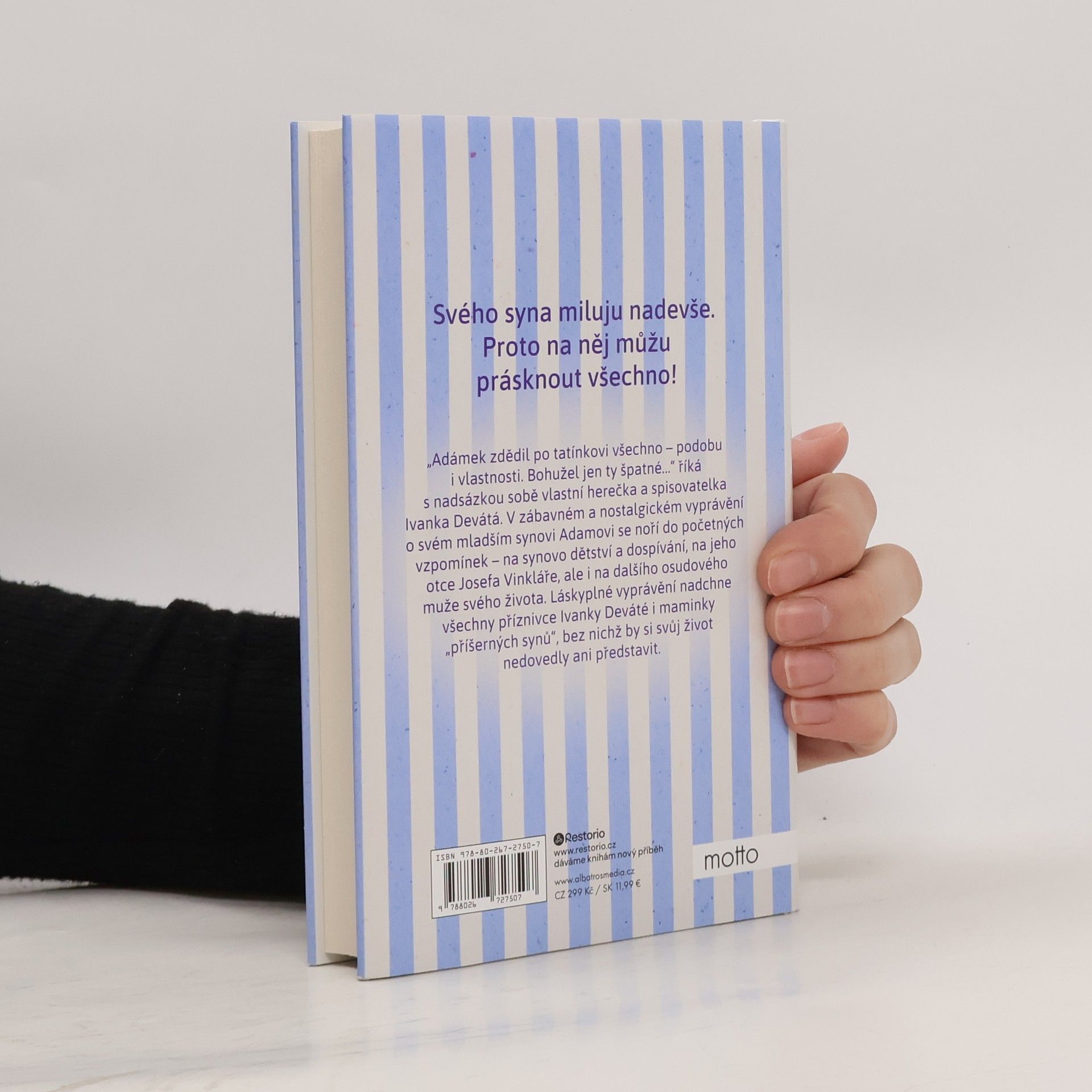Humorné i nostalgické vyprávění české herečky, ve kterém s jemnou ironií sobě vlastní vzpomíná na výchovu mladšího synka. "Adámek zdědil po tatínkovi všechno - podobu i vlastnosti. Bohužel jen ty špatné," říká s nadsázkou sobě vlastní herečka a spisovatelka Ivanka Devátá. V zábavném a nostalgickém vyprávění o svém mladším synovi Adamovi se noří do početných vzpomínek - na synovo dětství a dospívání, na jeho otce Josefa Vinkláře, ale i na dalšího osudového muže svého života. Nakladatelská anotace.