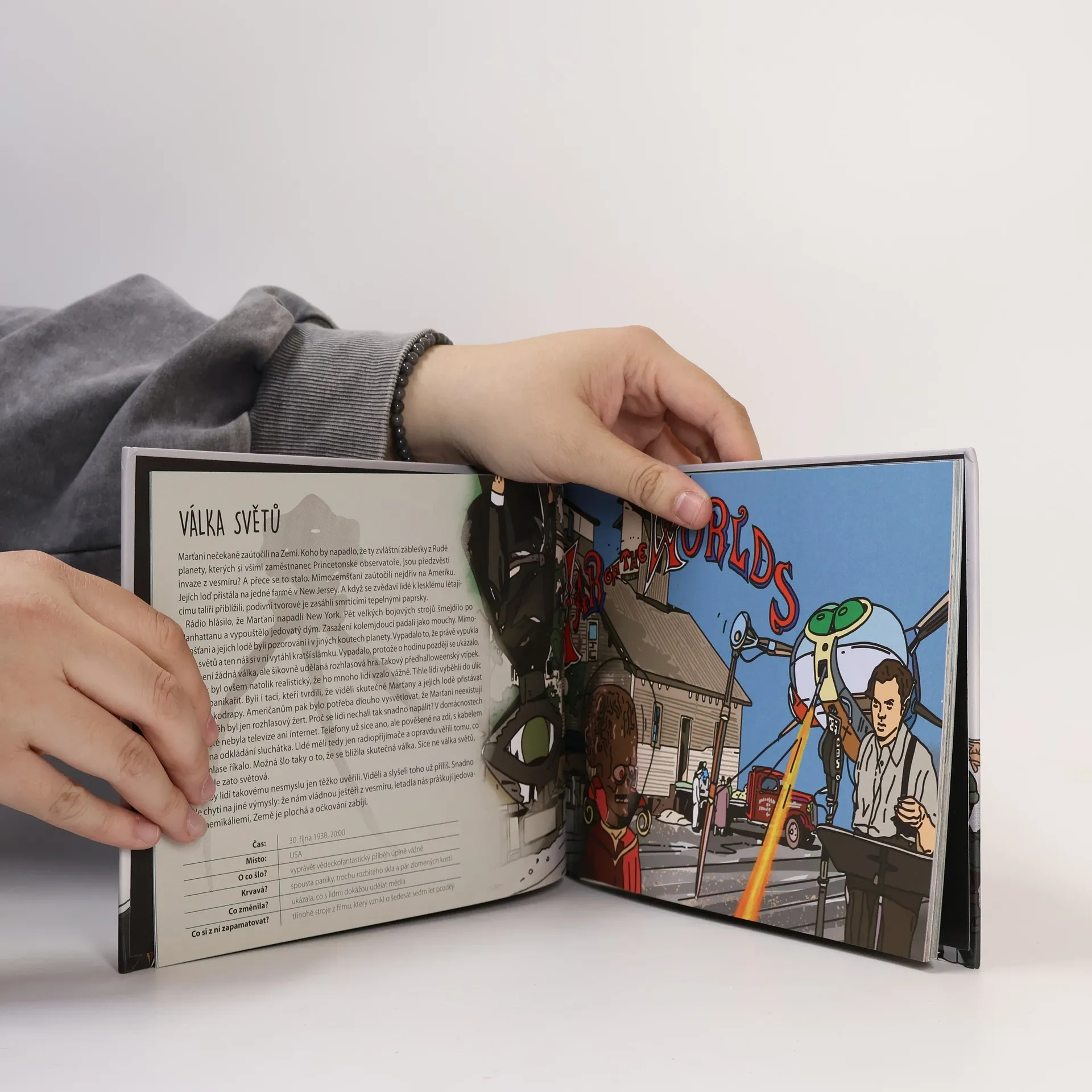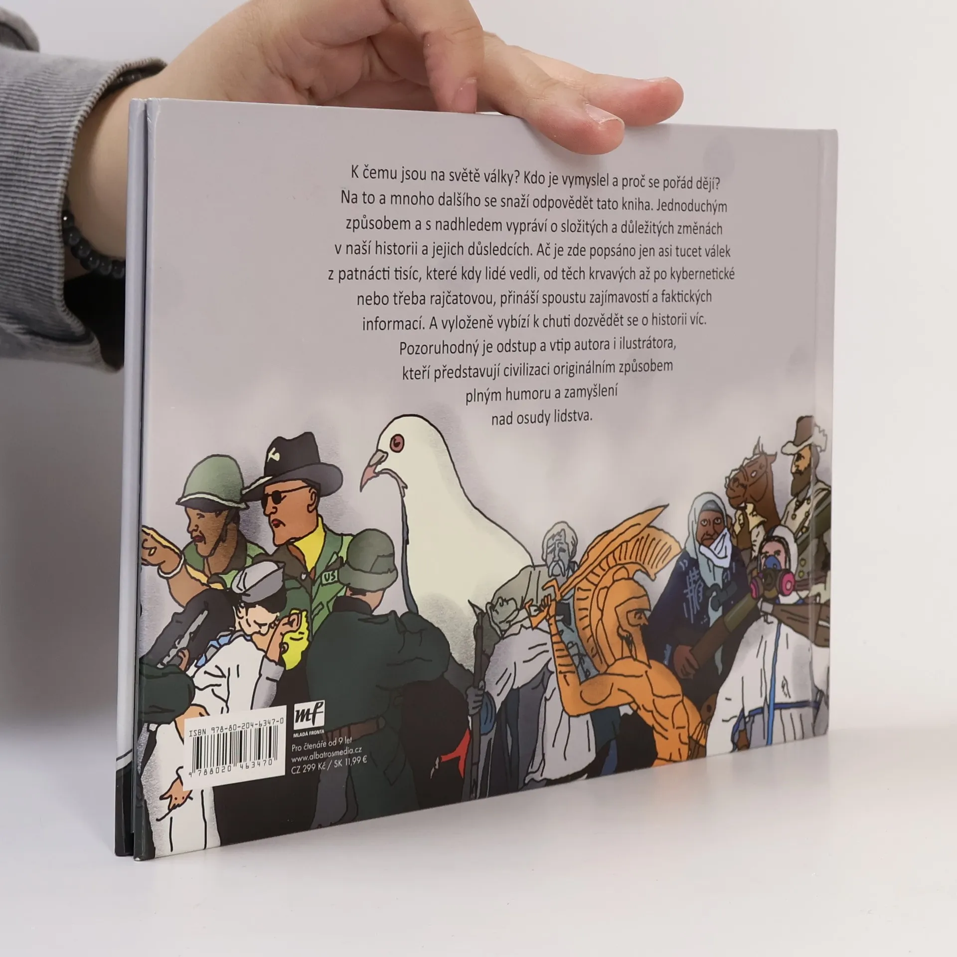 K čemu jsou na světě války? Kdo je vymyslel a proč se pořád dějí? Na to a mnoho dalšího se snaží odpovědět tato kniha. Jednoduchým způsobem a s nadhledem vypráví o složitých a důležitých změnách v naší historii a jejich důsledcích. Ač je zde popsáno jen asi tucet válek z patnáctitisíc, které kdy lidé vedli, od těch krvavých až po kybernetické nebo třeba rajčatovou, přináší spoustu zajímavostí a faktických informací. A vyloženě vybízí k chuti dozvědět se o historii víc.