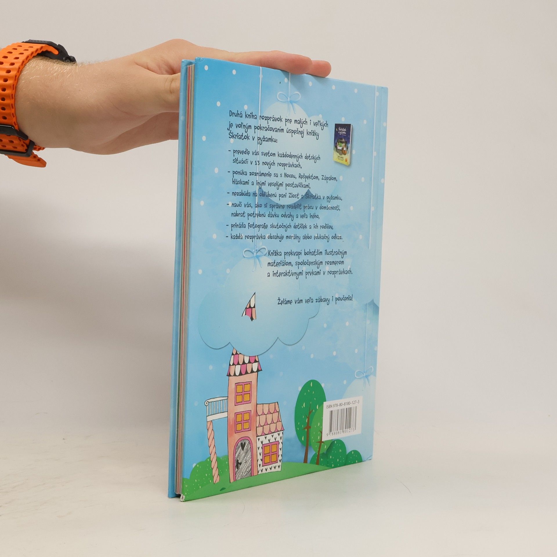 Pani Zlosť sa vracia!Druhá knižka rozprávok pre malých aj veľkých je voľným pokračovaním úspešnej knižky Škriatok v pyžamku. Prevedie vás svetom každodenných detských situácií v 13 nových rozprávkach. Hlavní hrdinovia sa popasujú so zápalom v ušku, s trénovaním výslovnosti hlásky R, s obhrýzaním nechtíkov, s nechuťou podeliť sa o hojdačku s inými deťmi, s nočným vybiehaním z postieľky a s ďalšími detskými trampotami.Knižka je ideálnym návodom pre rodičov na zvládnutie výchovných problémov s vtipom a ľahkosťou. Ponúka zoznámenie sa s Nocou, Rešpektom, bacilmi Helom a Monelou a inými veselými postavičkami. Nezabúda ani na obľúbenú pani Zlosť a Škriatka v pyžamku. Knižka prekvapí bohatším ilustračným materiálom, spoločenským rozmerom a interaktívnymi prvkami v rozprávkach.Knižka je vhodná pre čitateľov od 3 rokov.