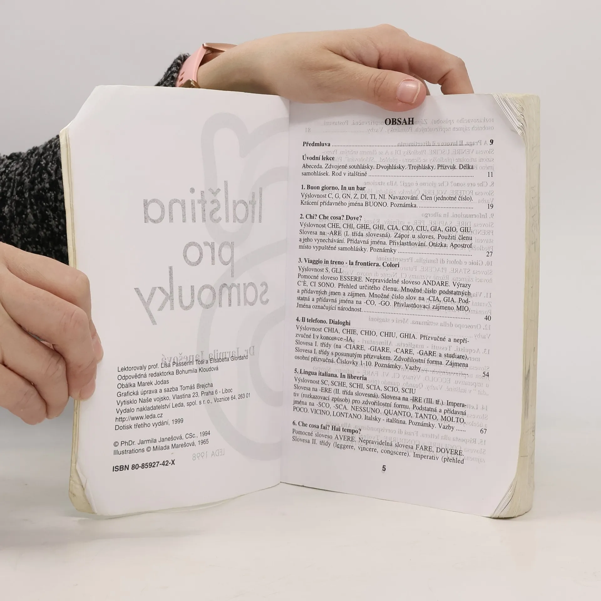 Oblíbená učebnice pro samouky v novém zpracování přináší základní znalosti italské mluvnice, slovní zásoby (v rozsahu asi 2500 slov ), frazeologie a výslovnosti. Důraz je kladen na: aktivní užívání italštiny schopnost dorozumět se v nejčastějších situacích pohotové vyjádřování Učebnice je určena též pro školy a kursy. Její součásti je brožura obsahující klíč ke cvičením s italsko-českým a česko-italským slovníčkem. Jako samostatný doplněk vydává Supraphon audionahrávku.