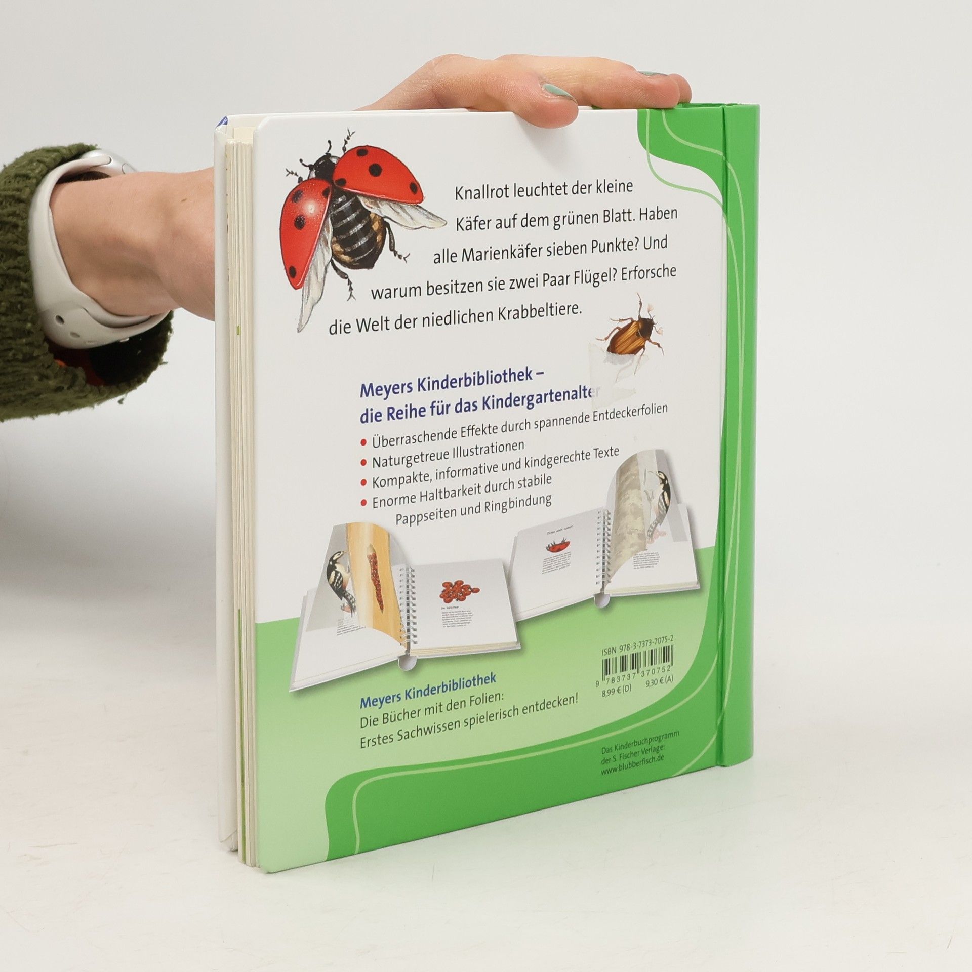 Die Bilderbuchreihe „Meyers kleine Kinderbibliothek“ vermittelt Kindern ab 3 Jahren erstes Sachwissen durch spannende Effekte. Im Band „Der Marienkäfer“ entdecken Kinder interessante Details über den Marienkäfer, wie seine sechs Beine, zwei Flügelpaare und sein Winterversteck unter Baumrinde.