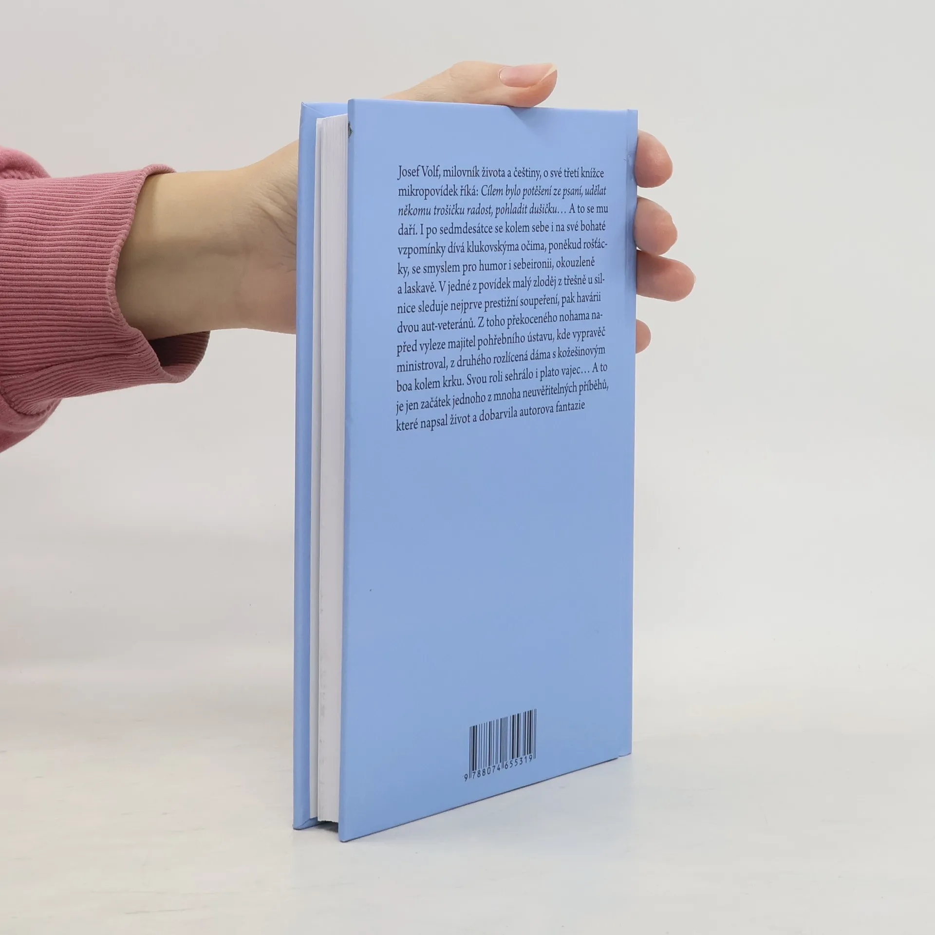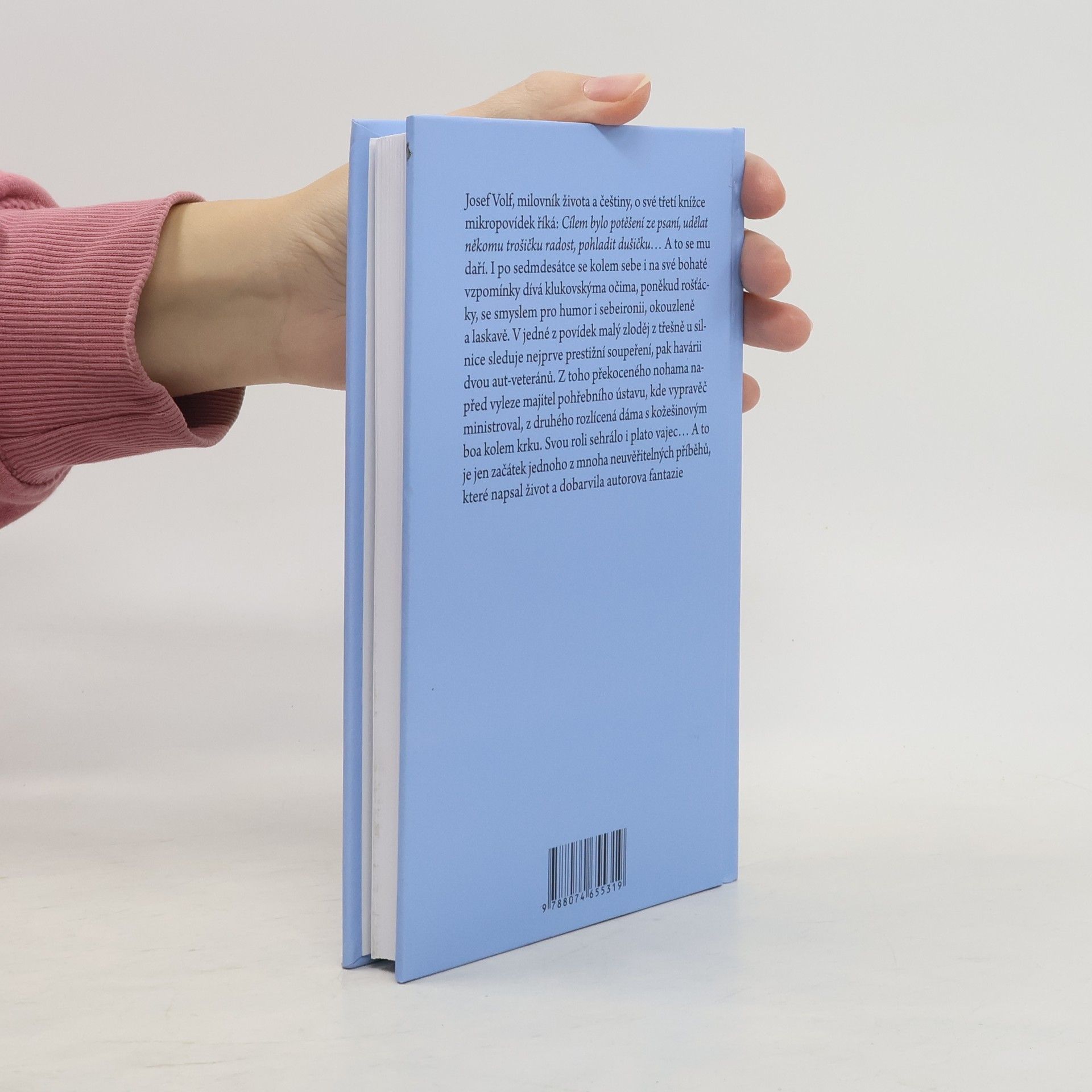 Josef Volf, milovník života a češtiny, o své třetí knížce mikropovídek říká: Cílem bylo potěšení ze psaní, udělat někomu trošičku radost, pohladit dušičku… A to se mu daří. I po sedmdesátce se kolem sebe i na své bohaté vzpomínky dívá klukovskýma očima, poněkud rošťácky, se smyslem pro humor i sebeironii, okouzleně a laskavě. V jedné z povídek malý zloděj z třešně u silnice sleduje nejprve prestižní soupeření, pak havárii dvou aut-veteránů. Z toho překoceného nohama napřed vyleze majitel pohřebního ústavu, kde vypravěč ministroval, z druhého rozlícená dáma s kožešinovým boa kolem krku. Svou roli sehrálo i plato vajec… A to je jen začátek jednoho z mnoha neuvěřitelných příběhů, které napsal život a dobarvila autorova fantazie.