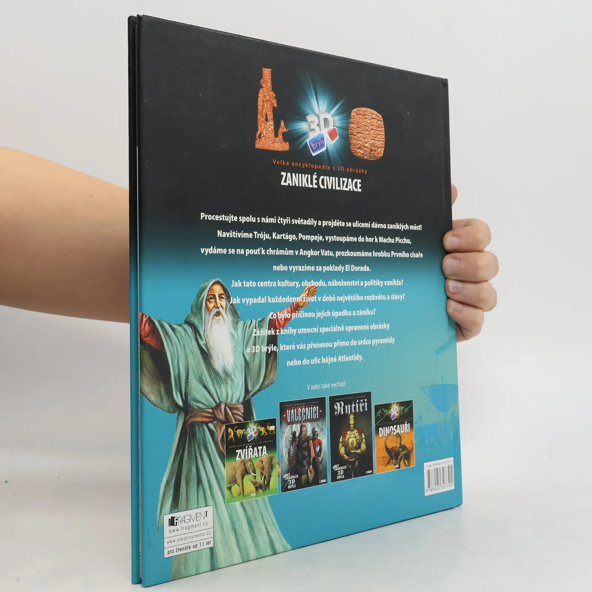 Procestujte spolu s námi čtyři světadíly a projděte se ulicemi dávno zaniklých měst. Navštívíme Tróju, Kartágo, Pompeje, vystoupáme do hor k Machu Picchu, vydáme se na pouť k chrámům v Angkor Vatu, prozkoumáme hrobku Prvního císaře nebo vyrazíme za poklady El Dorada. Jak tato centra kultury, obchodu, náboženství a politiky vznikla? Jak vypadal každodenní život v době největšího rozkvětu a slávy? Co bylo příčinou jejich úpadku a zániku? Zážitek z knihy umocní speciálně upravené obrázky a 3D brýle, které vás přenesou přímo do srdce pyramidy nebo do ulic bájné Atlantidy.