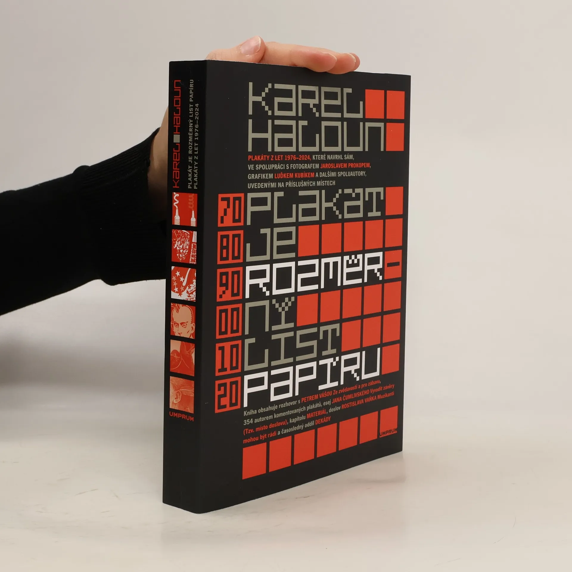 Kniha Plakát je rozměrný list papíru, která volně navazuje na úspěšnou monografii To musí jít přečíst i potmě!, je prostřední částí zamýšlené trilogie, shrnující práci Karla Halouna za posledních bezmála padesát let. Tentokrát čtenářům představujeme další rozsáhlou část jeho tvorby, kterou tvoří dnes již téměř zanikající propagační médium - plakáty. Publikace zahrnuje práce, které Karel Haloun vytvořil sám či ve spolupráci s grafikem Luďkem Kubíkem a dalšími spoluautory v letech 1976-2024. Některé z jeho plakátů, tištěných zejména v osmdesátých letech v malých nákladech sítotiskem, jsou dnes cennými sběratelskými artikly. Jedná se například o plakát k prvnímu tuzemskému koncertu Rolling Stones v roce 1990 na Strahově nebo koncertní plakáty pro skupiny Jasná páka a Hudba Praha z roku 1981, resp. 1984, a mnohé další. Grafika Karel Haloun, Luděk Kubík /3.dílna/ a Jan Arndt.