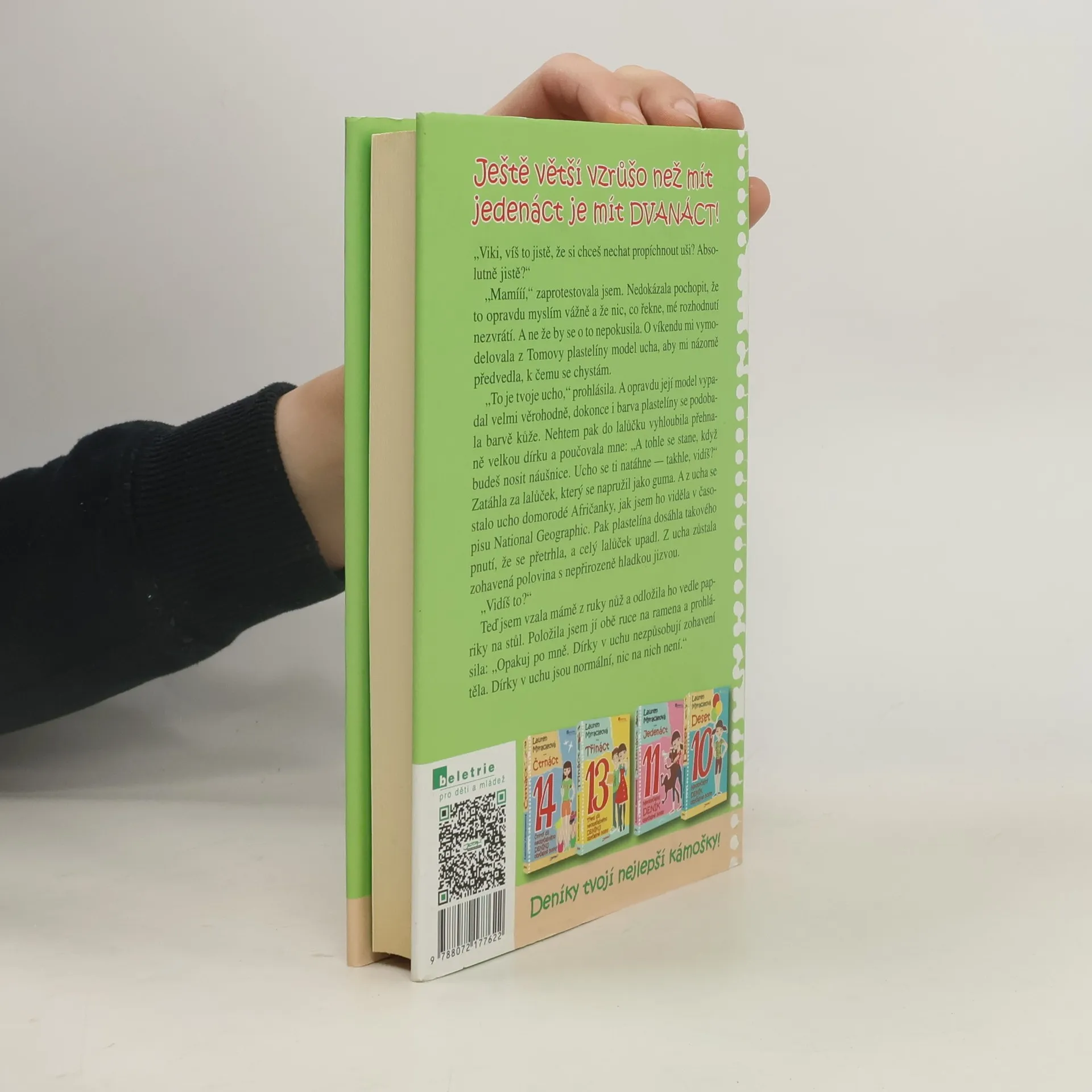 Ještě větší vzrůšo než mít jedenáct je mít DVANÁCT! Viki, veselá, milá a vtipná hrdinka úspěšné knihy JEDENÁCT, je zase o rok starší a dospělejší. Ovšem její někdy spíše úsměvné, jindy vážnější trable a nedorozumění s rodiči, sourozenci, ale hlavně kamarádkami současnými i bývalými a těmi, s nimiž se nikdy přátelit nehodlá, jí život rozhodně neulehčují. Viki zjišťuje, jak hořce chutná zrada ze strany blízkého člověka, ale zakouší i stud nad svým chováním, když i ona dokáže ublížit. A navíc si musí zvyknout na spoustu novinek, jako jsou například lesky na rty, noví spolužáci, letní tábory, ženské prádlo a hlavně KLUCI!