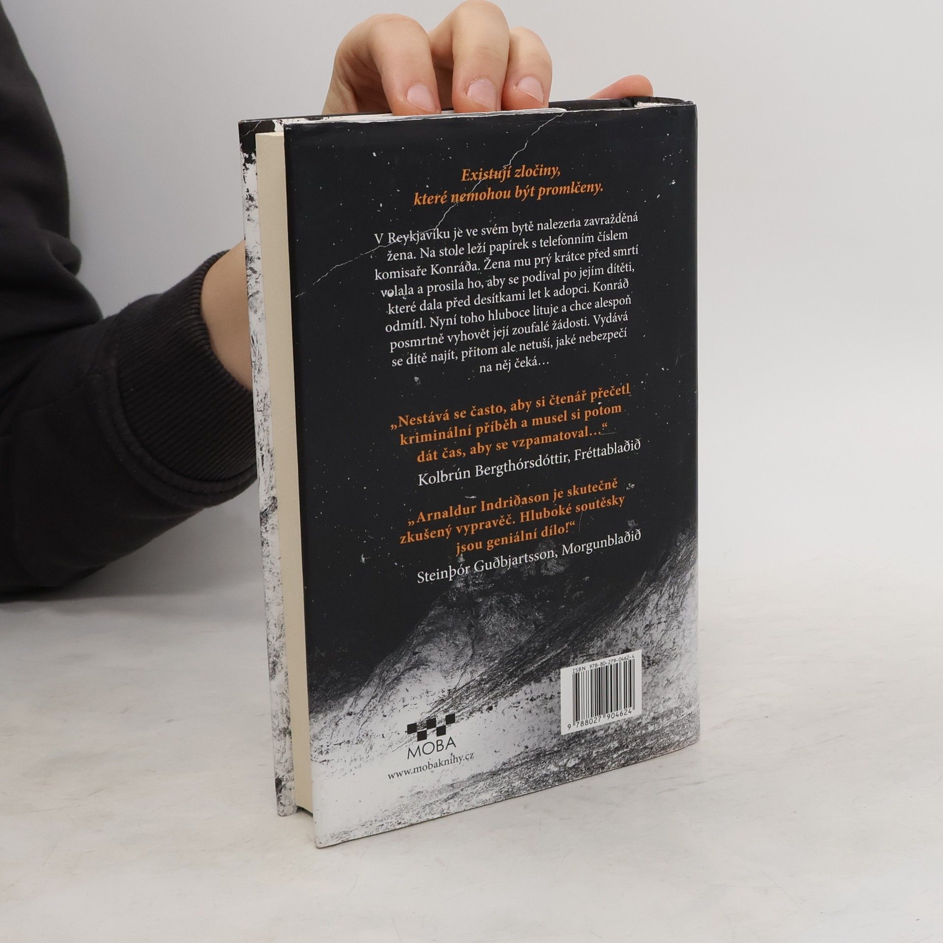 Ve svém bytě v Reykjavíku je nalezena zavražděná žena. Na stole leží papírek s telefonním číslem komisaře Konráda. Žena mu prý krátce před smrtí volala a prosila ho, aby se podíval po jejím dítěti, které dala před desítkami let k adopci. Konráð odmítl. Nyní toho hluboce lituje a chce alespoň posmrtně vyhovět její zoufalé žádosti. Vydává se dítě najít, přičemž netuším, jaké nebezpečí na něj čeká... Další mistrovské dílo nejúspěšnějšího islandského autora současnosti.