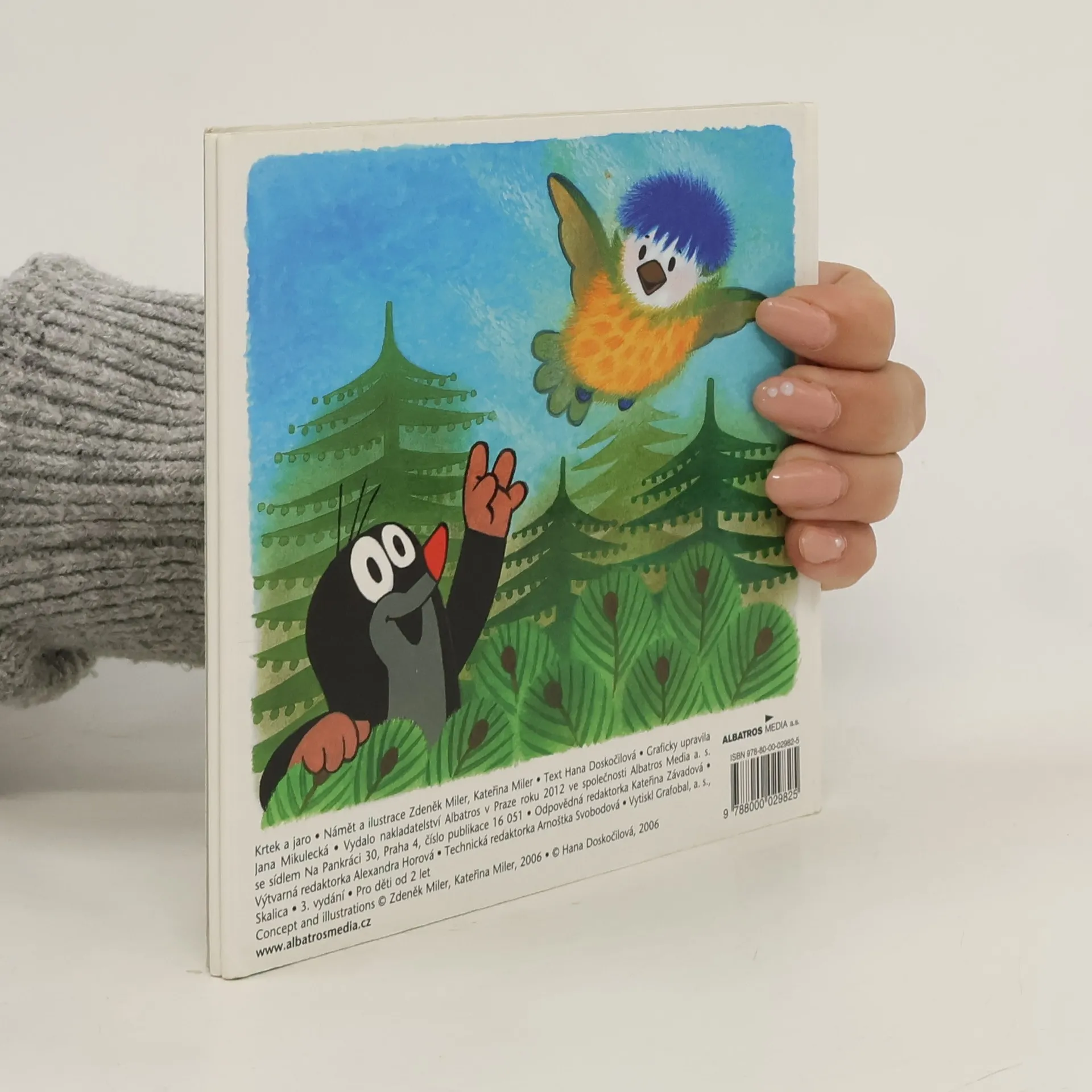 O tom, že jaro už je tady, se Krtek přesvědčil, když po zimě vykoukl ze své podzemní světničky. Krtek je rád, že zimu dobře přečkal, a těší se na jarní sluníčko. Ale jak ostatní zimu přežili? Když Krtek zaslechne úpěnlivé pípání malé sýkorky, která vypadla z dutiny stromu, je to úkol pro něj jako stvořený. Ptáčátko utěší, nakrmí, a než zesílí a naučí se lítat, ochrání ho před liškou. Leporelo pro nejmenší.