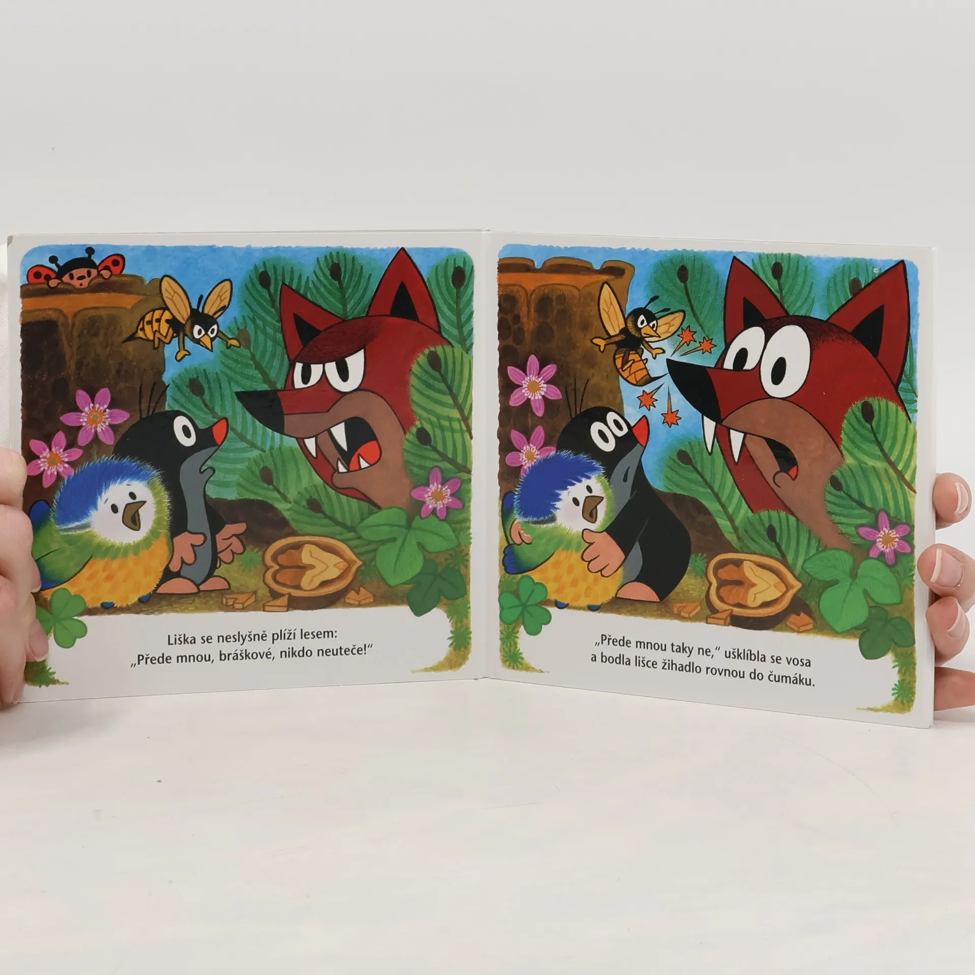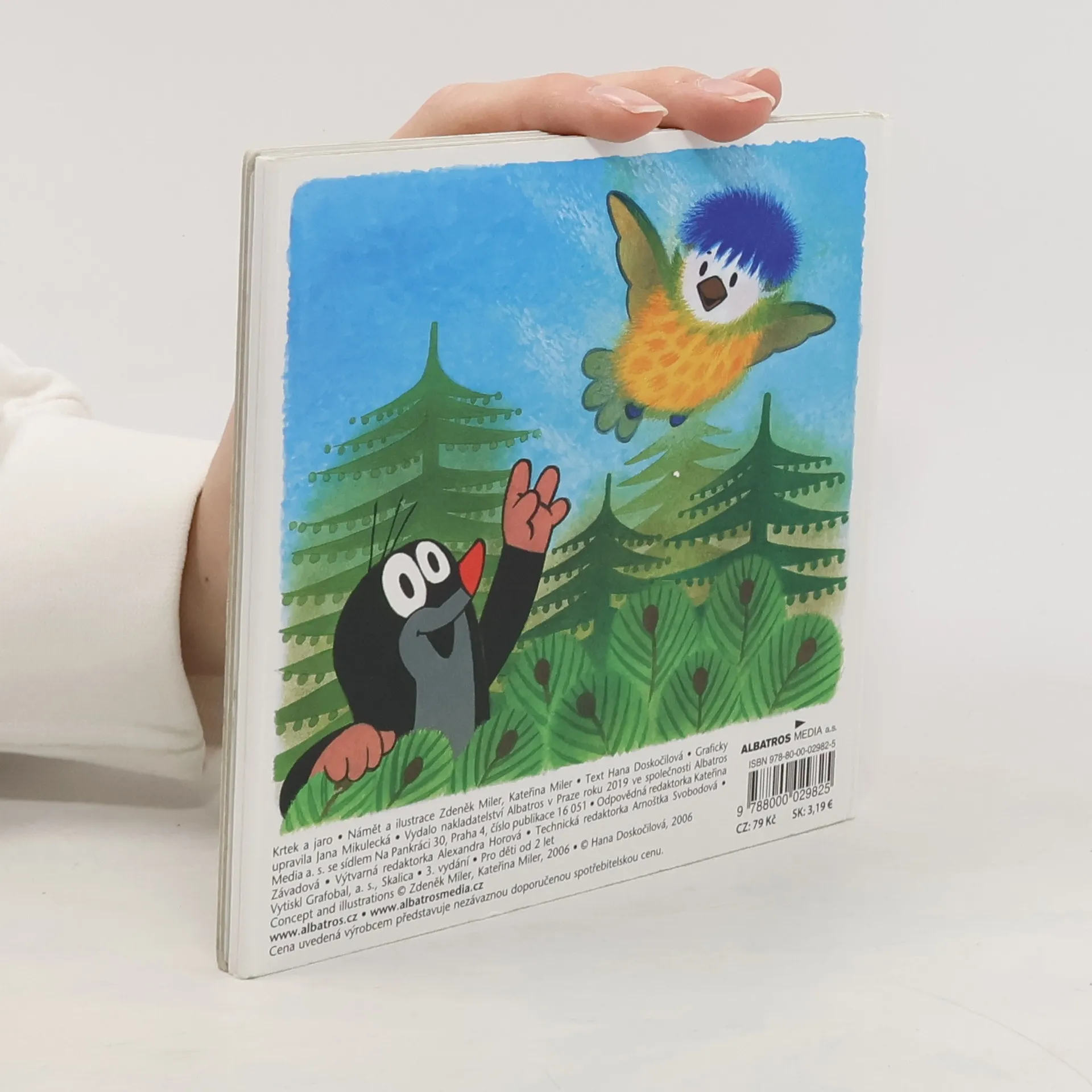O tom, že jaro už je tady, se Krtek přesvědčil, když po zimě vykoukl ze své podzemní světničky. Krtek je rád, že zimu dobře přečkal, a těší se na jarní sluníčko. Ale jak ostatní zimu přežili? Když Krtek zaslechne úpěnlivé pípání malé sýkorky, která vypadla z dutiny stromu, je to úkol pro něj jako stvořený. Ptáčátko utěší, nakrmí, a než zesílí a naučí se lítat, ochrání ho před liškou. Leporelo pro nejmenší.